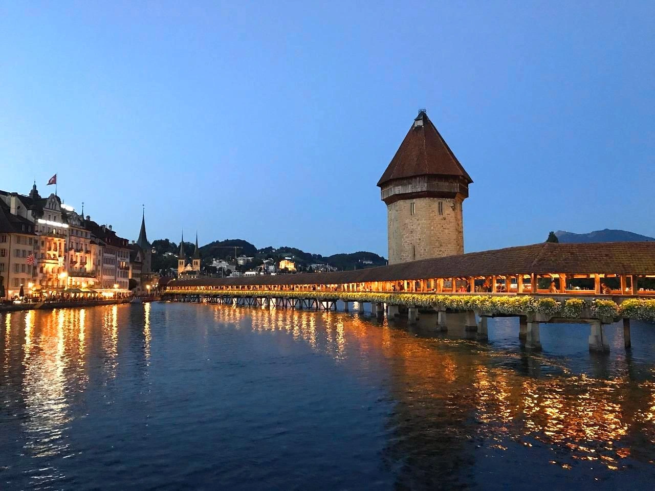 해가 밤 9시를 훌쩍 넘겨지는 바람에 야경을 보기까지 시원한 강바람을 맞으며 한참을 기다려야 했지만, 밤의 루체른은 전혀 다른 옷을 갈아 입고 우리를 맞이해 주었다.