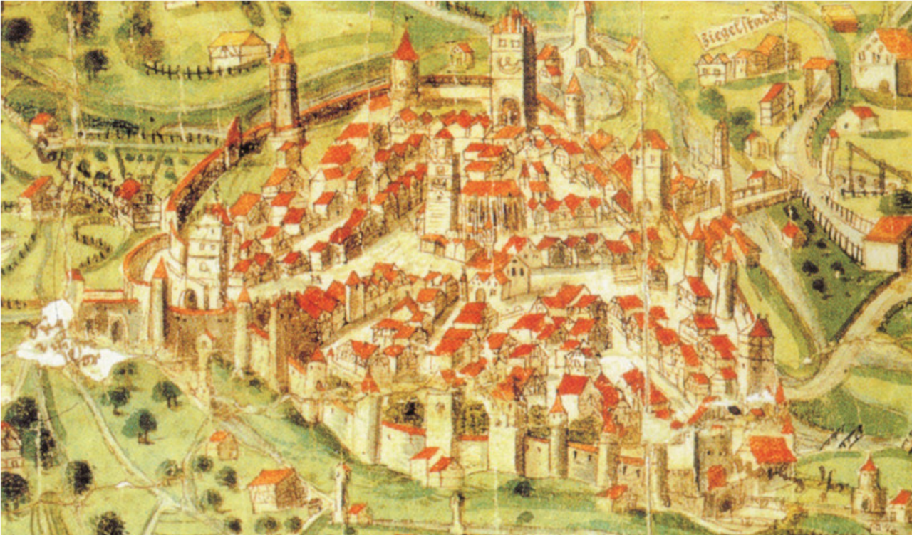 신성 로마 제국의 호헨스타우펜(Hohenstaufen) 왕조에 의해 12세기 초에 본격적인 도시로 발전한 것으로 기록되어 있는 딩켈스뷜의 실제 역사는 8세기부터 시작되었다. 웬만한 사람들에게 낯선 이름의 도시겠지만 딩켈스뷜은 중세부터 남북으로는 이탈리아와 북부 유럽을 잇는 길과 동서로는 보헤미아(체코)와 서부 유럽을 잇는 길이 교차하는 교통의 요지로서 정치, 경제, 군사적으로 매우 중요한 도시였다.