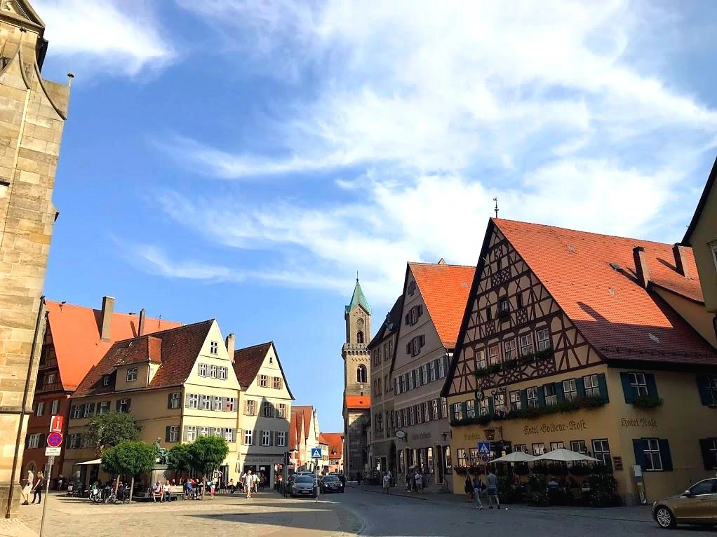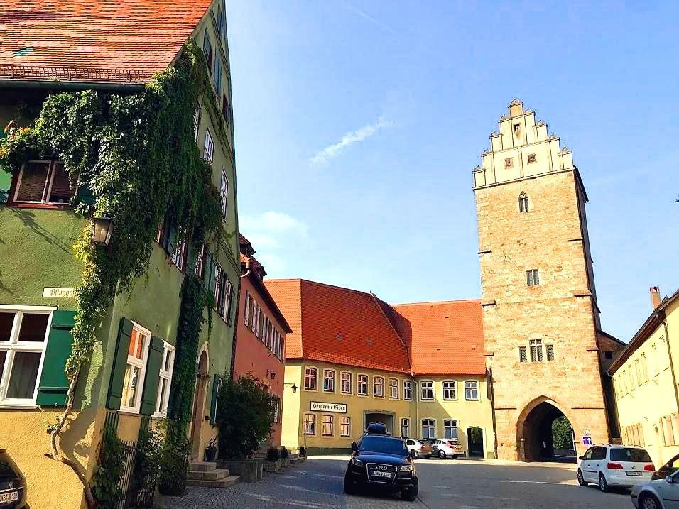 저녁 시간까지 뇌르틀링(Nördlingen) 근처의 숙소까지 가기 위해서는 더 이상 미적거릴 수 없어 아쉬움을 뒤로한 채 가도의 남쪽을 향해 다시 시동을 걸었다. 로텐부르크에서 가도를 타고 남쪽으로 약 30분을 더 달리다 보면 그와 비슷한 모습의 작은 도시에 들어서게 된다.