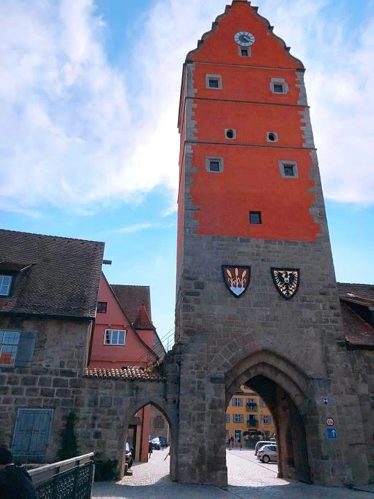 길을 따라 감탄하며 조금 걷다 보니 북쪽의 성문인 로텐부르크 게이트에 도착했다. 14세기에 건설된 높고 견고한 도시의 방어탑이지만 여기에는 중세 후기 독일의 아픈 역사가 깃들어 있다.