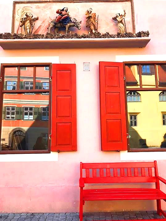 도시의 북쪽 성문인 로텐부르크 게이트(Rothenburger Tor)를 향해 나 있는 바인마크트(Weinmarkt) 길을 따라 올라가 보았다. 바인마크트 길은 곧장 닥터-마틴-루터 길(Doktor-Martin-Luther-Straße)과 연결되어 있다. 길을 따라 서 있는 고풍스럽고 예쁜 가옥들에서 눈을 떼기 어렵다. 각각의 건물들은 베란다의 화분이며 작고 귀엽지만 아름다운 동상들로 장식되어 있거나, 옛날의 돌출 간판들이 줄지어 있어 그 길을 따라 걷는 것 자체가 즐거움이다.