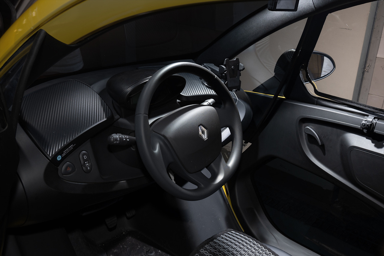 굉장히 협소한 운전석입니다. 거의 혼자 타며 가까운 거리만 이동할때는 충분한 공간 입니다.