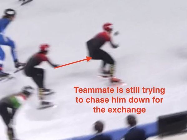 그런데 릴레이 순서를 바꿀 수 없다는 규정과, 준결승에서 여자 선수가 남자 선수에게 터치하지 못한 것은 아무런 관계가 없다. 예를 들어 한국팀의 마지막 주자가 마지막 스케이팅을 남겨둔 상황에서 한국팀 선수가 꼴찌에 있다고 가정해 보자. 하지만 마지막 주자의 판단 실수 혹은 1위로 달리고 있는 다른 국가의 선수에 의해 터치를 이어받았다면 어떻게 되었을까? 더군다나 쇼트트랙의 맥락상 이러한 상황은 있을 수도 없는 일이고, 일어난다고 해도 당연히 실격 사유에 해당한다.