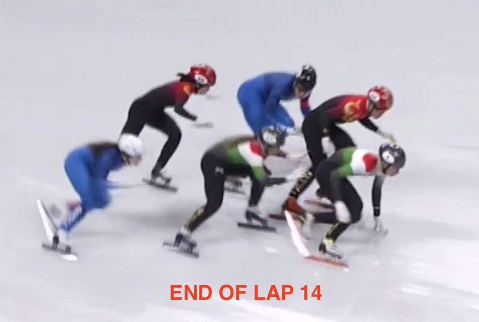 위의 캡처된 사진들 중 세 번째 사진을 보면 푸시를 받아야 할 렌지웨이선수는 러시아 선수와의 충돌로 인해, 터치가 이루어졌다고 생각한 모양인데, 내가 저 상황이었더라도 착각했을 것이다. 하지만 푸시를 해야 했던 여자선수는 분명히 노터치라는 것을 알고 있다는 것이 핵심이다. 따라서 여자선수는 렌지웨이선수를 터치하기 위해 따라가는 장면을 네 번째 사진을 통해 알 수 있다. 하지만 현실적으로 렌지웨이 선수는 거의 전속력으로 스퍼트를 내고 있고 터치 시도 과정에서 속도가 줄어든 여자 선수가 뒤늦게 따라가서 푸시를 한다는 것은 거의 불가능하다. 만약 렌지웨이도 터치가 이루어지지 않은 것을 알았다면 속도를 줄여서 푸시를 받았거나, 반 바퀴 후 다음 코너에서 터치를 받기 위해 코스 안쪽으로 다시 들어갔을 것이기 때문이다. 실수로 한 반칙도 반칙이다. 당연한 이야기를 설득하려니 그것도 참 어려운 일이라는 것을 이 글을 쓰면서 깨닫는다.