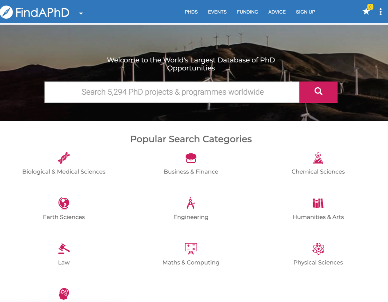 영국에서 박사 기회를 찾기 위해서는 파인드 PhD라는 웹사이트를 통해 알아볼 수 있다 (https://www.findaphd.com/phds). 영국뿐만 아니라 미국, 호주, 일본, 유럽 국가들 외 전 세계에 있는 대학의 연구팀에서 광고를 올리는 사이트이다. 자신이 관심 있는 분야별로 분류되어있고, 학교, 교수 이름, 등등 원하는 키워드 검색을 통해서 자신의 연구를 찾을 수 있다.