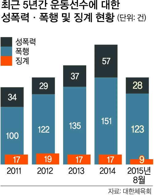 지도자들은 성적과 대학 입학, 그리고 실업팀 및 프로팀 입단을 핑계로 선수에게 무차별한 언어폭력에서 부터 인간의 자존감을 무너뜨리는 행동들을 매일매일 일삼고 있다. 엘리트 선수들의 대부분 (모두는 아님) 이미 초등학교 시절부터 공부와는 담을 쌓은 채 (학교와 담을 쌓은 채) 중. 고등학교에 진학하면서 오로지 운동만이 대학 진학과 진로에 있어 유일한 역할로서 기능했다. 그런 되돌아갈 수 없는 길을 선택해버린 선수들에게 지도자들은 윤리적으로 가당치도 않은 다양한 형태의 폭력을 가하는 현실이다. 신체적인 폭력이 아니라 언어폭력이라 할 지라도 가해져서는 안 될 일이지만, 많은 지도자들이 '자기 선수 때는 엄청 맞았으며 지금 애들은 운동을 너무 편하게 한다'며 자기가 가르치는 선수에게 단지 물리적 폭력을 가하지 않는다는 이유만으로 스스로에게 면죄부를 준다. 가르치는 선수가 만일 교제하는 이성친구라도 그렇게 할 것인가? 때리지만 않으면, 욕을 해도 문제가 없는 것인가? 그 행동과 태도가 너무나도 자연스러운 문화같이 되어버려서 이제는 어디까지가 수용 가능한 태도인지 선을 긋기가 애매할 정도다.
