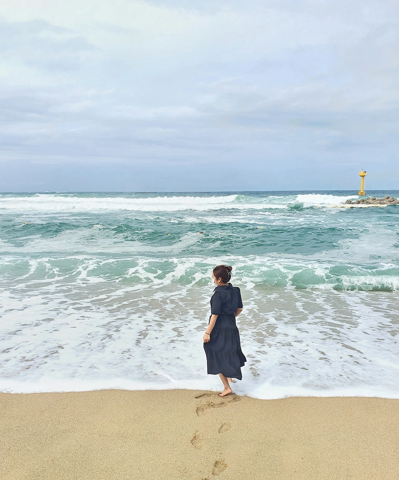 그렇지만 '이쯤이야 털어버리고 씻으면 되지~'란 가벼운 마음으로 기꺼이 치마 끝자락을 바닷물에게 다 내주었다. (덕분에 짠내음이 가득해졌다...)