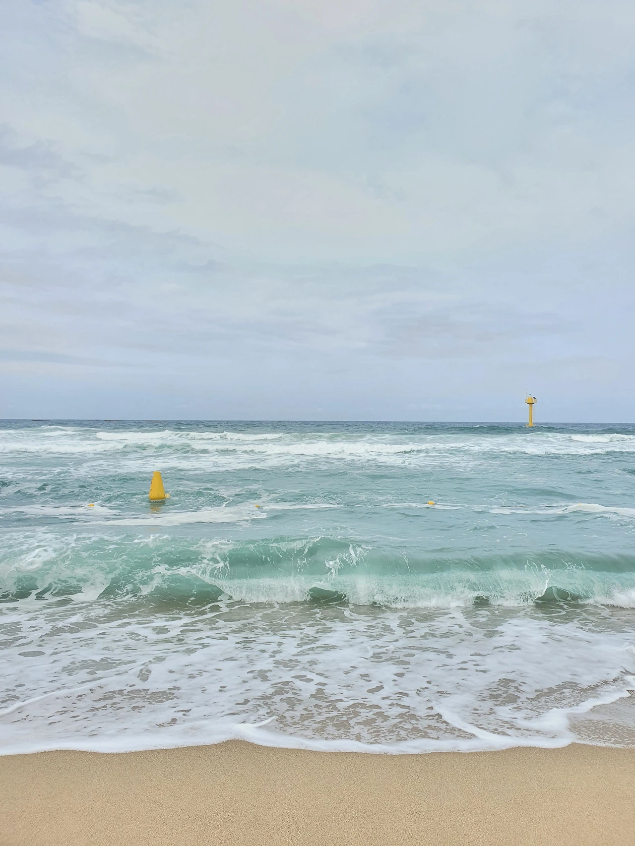 신발은 잠시 맡겨두고, 엄마와 맨발로 꽤 오랜 시간 봉포 해변가를 거닐었다. 이따금씩 어퍼컷으로 훅 들어오는 파도들 덕에 안전거리를 확보하지 못해 둘 다 물세례를 맞기도 했다.
