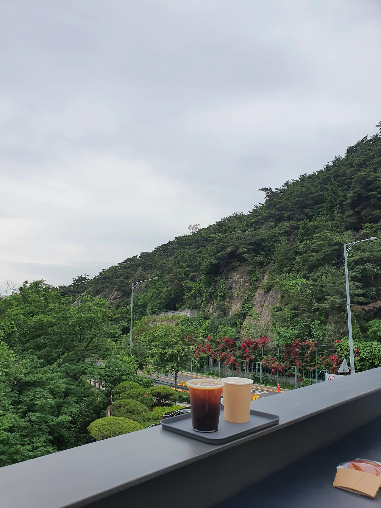 소낙비가 쏟아지기 이전, 인왕산 전경이 곧바로 보이는 테라스 좌석에 엄마와 나란히 앉아 짧은