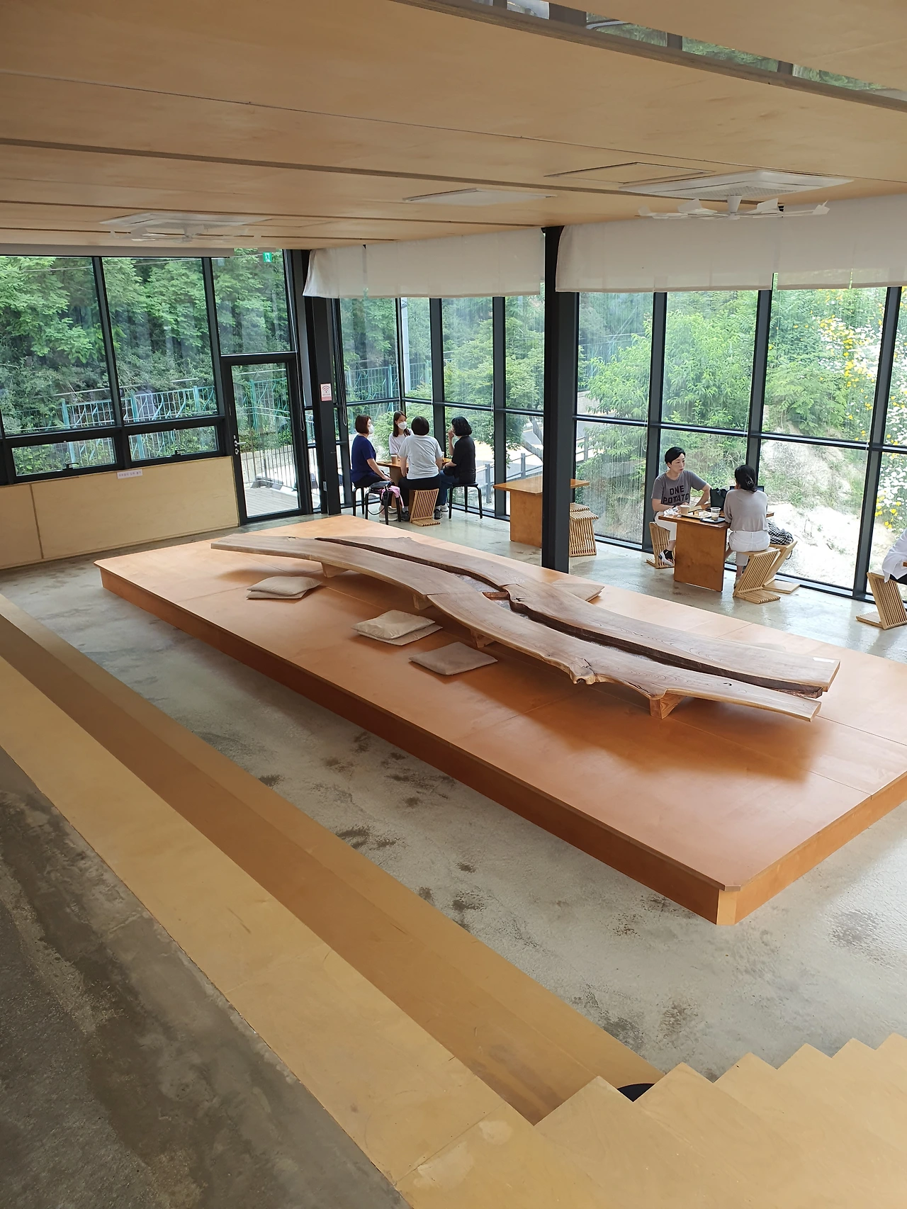 산자락에 위치한 카페의 내부는 온통 책과 풀과 나무로 그득하다. 더군다나 이날은 비도 제법 시원하게 와준 덕에, 코에 닿는 풀냄새가 평소보다