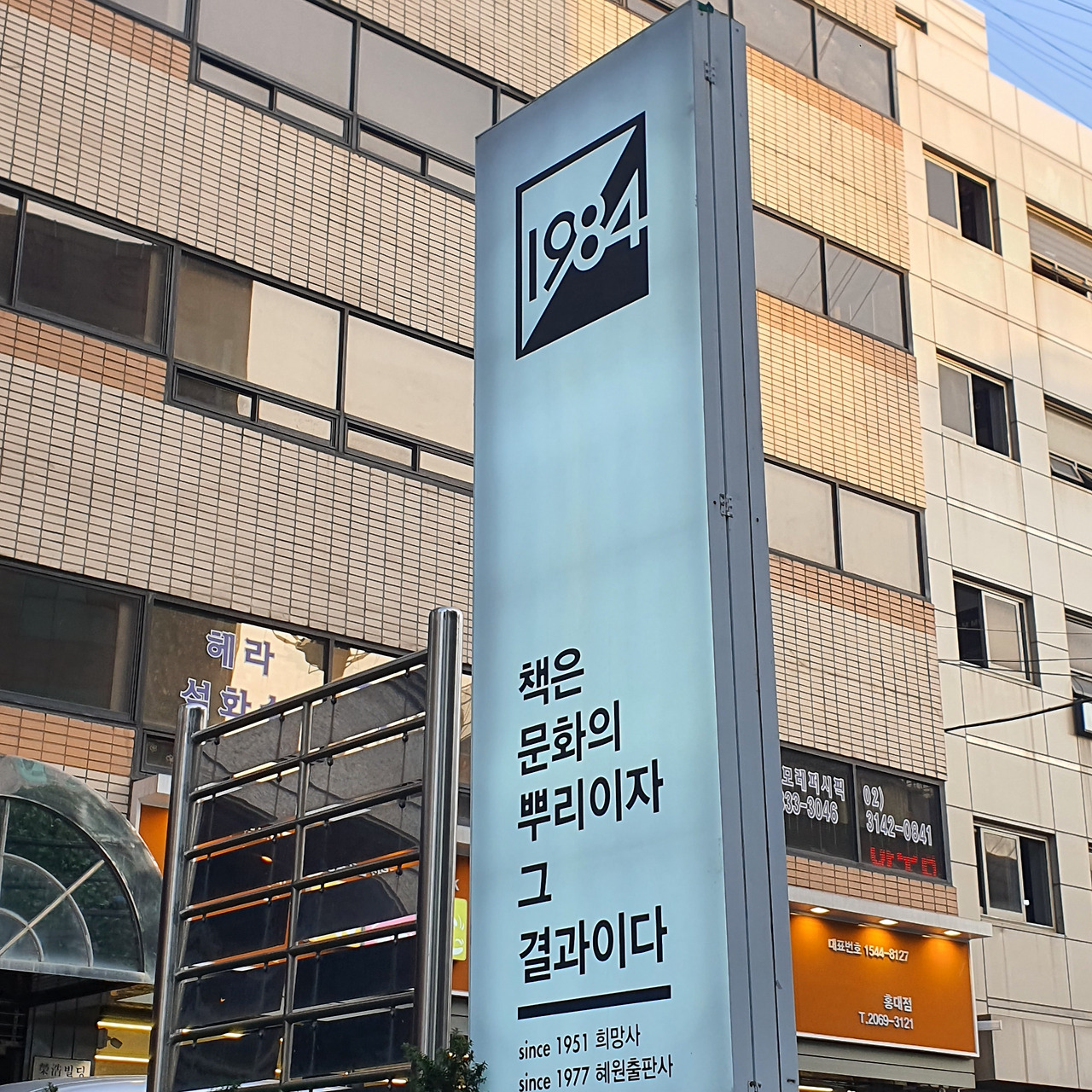 네 번째 공간은 홍대입구역에 위치한 1984. '책은 문화의 뿌리이자 그 결과이다.' 굵직한 슬로건이 적힌 커다란 스탠딩 입간판이 눈에 띈다. 외관으로 보이는 것보다 내부가 훨씬 넓고 뒤편에는 테라스와 대형 테이블도 있어 자리할 수 있는 선택지가 다양하다.