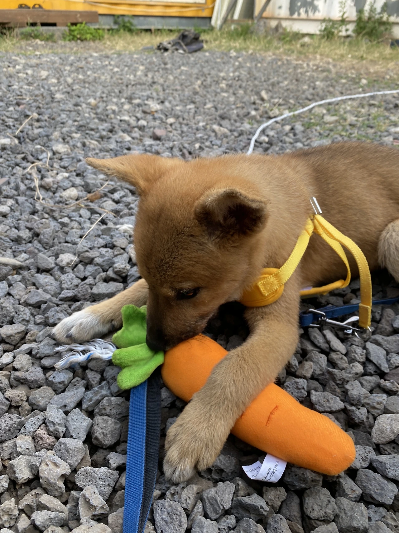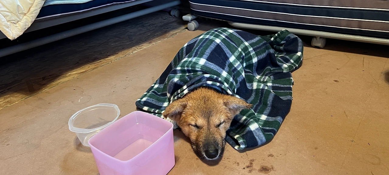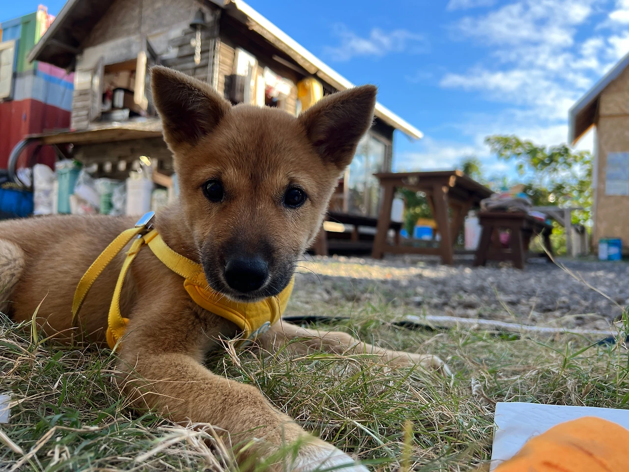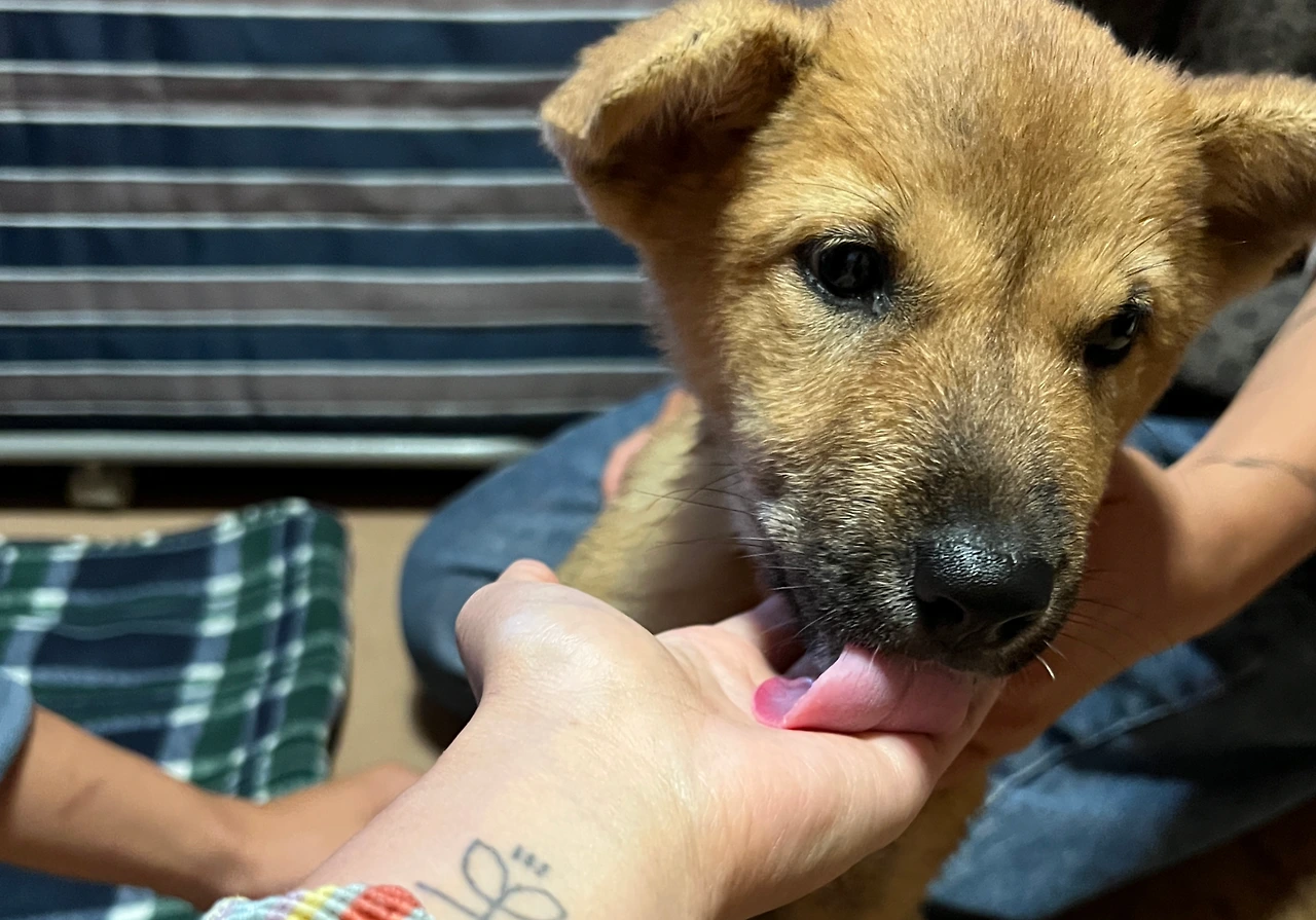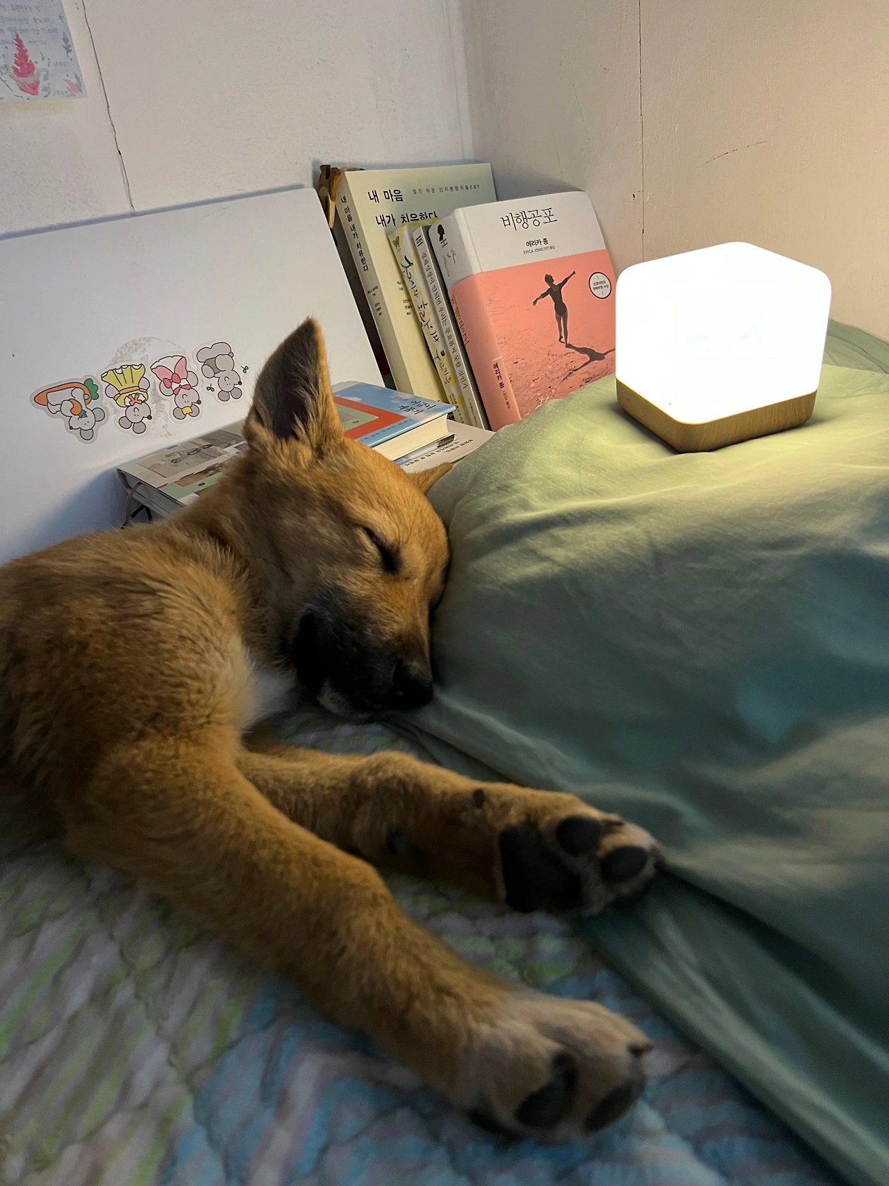 다행히 아지는 오자마자 우리 친구들의 환대를 받으며 목욕을 하고 밥과 물을 배불리 먹었다. 친구가 마트에서 하네스, 리드 줄도 사 오고 장난감도 사 왔다. 마당 한편에 푹신한 자리를 마련해 주었고 지금은 아지가 그곳에 적응할 수 있도록 친구들이 개집에 앉아 있는 주객전도의 상황이다. 아지는 처음엔 약간 무서워하는 것 같더니 이내 밥도 잘 먹고, 이제는 꼬리를 흔들며 보들보들하고 쪼그마한 혀로 우리 손을 핥아준다. 방금 나랑 장난감으로 활발하게 놀기도 했다. 친구가 엄청난 책임감과 애정을 느끼며 일단 아지를 위해 힘쓰겠다고 하니 한 생명의 삶이 내동댕이쳐지지는 않았구나, 안도감을 느낀다. 아침까지 유기견이었던 아지는 다행히 지금은 많은 이의 사랑둥이가 되어있다.