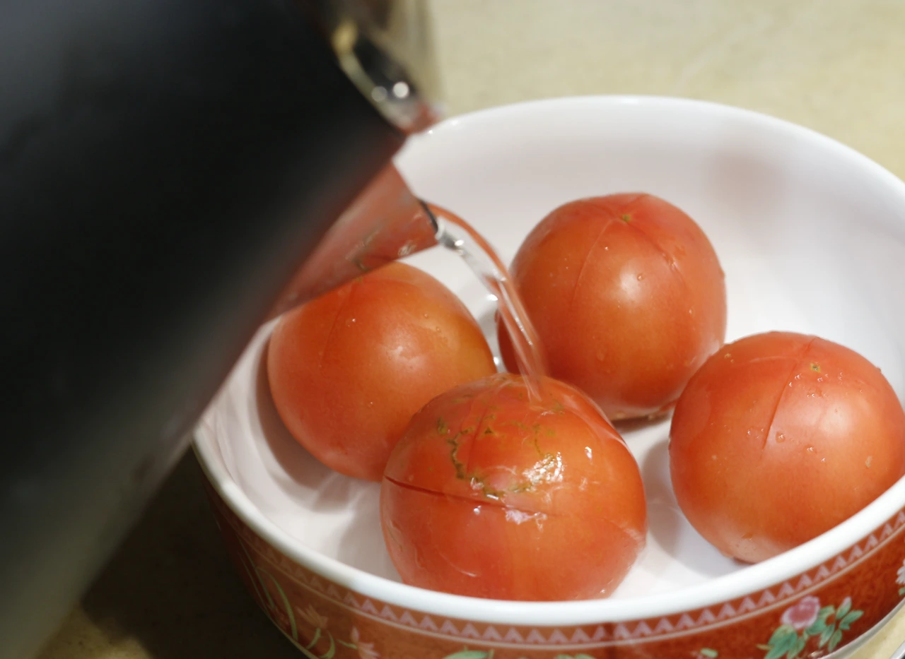 먼저 토마토의 껍질을 벗겨야 하는데 꽤 귀찮은 작업이었다. 이 작업을 하기 싫으면 이미 껍질이 벗겨진채 판대하는 홀토마토를 구매하면 된다. 토마토 껍질을 벗기려면 뜨거운 물에 토마토를 데친다음 껍질을 벗겨야 한다. 나는 칼로 토마토에 십자 모양을 낸 뒤 뜨거운 물을 부은 뒤 다른 밑준비를 하였다. 이렇게 해두면 굳이 물을 끓여 토마토를 데치지 않아도 토마토 껍질을 쉽게 벗길 수 있다.