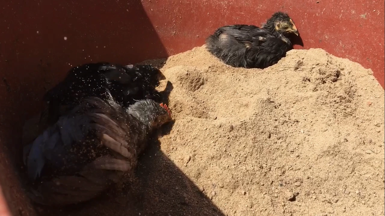 그런데 이런 진드기에 천하무적인 생물이 있다. 바로 '닭'이다. 닭들에게는 '닭진드기'라는 것이 잘 붙는다. 그런데 닭들은 흙목욕을 통해 진드기를 털어낸다. 움푹 파인 구덩이에서 몸을 털어 흙을 몸 위로 끼얹고 털어냄을 반복한다. 배, 옆구리, 날개 등 이쪽저쪽을 비빈다. 이 외에도 나른한 대낮에 한 곳에 모여 몸을 베베 꼬아서 몸에 붙은 진드기 및 벌레들을 쪼아 먹으며 청소하기도 하고, 동료의 몸에 붙은 것을 쪼아 먹기도 한다. 닭들은 풍성한 털 안에서도 좁쌀만 한 진드기를 잡아내는 매서운 눈을 가지고 있다. 이는 닭들의 주요 습성이자 일과이다.