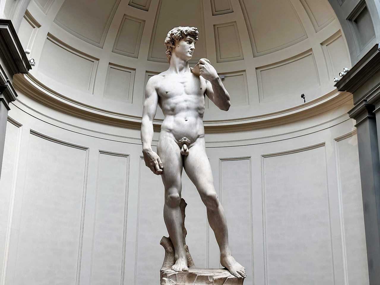 《다비드(David)》는 그를 조각가로서 불멸의 반열에 올려놓은 작품이다. 미켈란젤로는 이 거대한 조각에서 다비드를 승리의 순간이 아니라, 결전을 앞둔 긴장감 넘치는 찰나로 묘사하였다. 신체는 완벽하게 균형 잡혀 있으며, 눈빛은 날카롭고 입술은 다문 채 결의를 담고 있다. 이 조각은 고대 조각의 영향 아래 탄생했으나, 그 표현의 심리적 깊이는 르네상스 조각을 새롭게 정의내린 순간이었다. 이 작품은 피렌체 시민들에게는 도시의 자유를 상징하는 존재로 받아들여졌다.