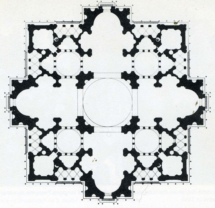 1506년부터 브라만테는 새로운 성 베드로 대성당의 총괄 설계를 시작한다. 그는 고딕 양식의 십자형 구조 대신, 고대 로마의 원형 구조에 기반한 중앙집중식 평면 구도를 구상한다. 이 구도는 완벽한 대칭, 수학적 비례, 명확한 공간 체계를 지향하는 이상적 건축의 구현이었다. 브라만테의 원래 계획은 거대한 돔을 중심으로 십자형 팔각 구조를 배치하는 형식이었으며, 이는 훗날 미켈란젤로의 완성안에도 결정적 영향을 미친다.