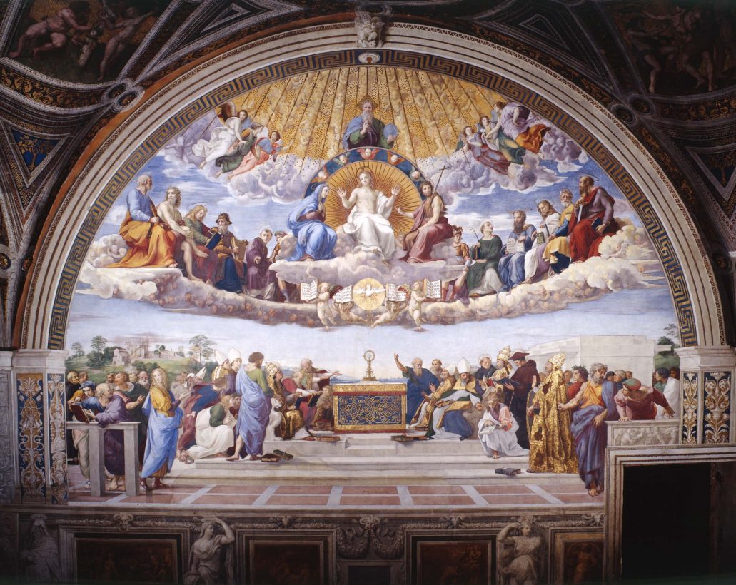 라파엘로가 서명의 방 네 벽면에 그린 벽화는 철학, 시학, 신학, 법학을 각각의 주제로 삼았다. 이는 곧 르네상스 인문주의가 신과 인간, 고전과 기독교를 어떻게 통합하고자 했는지를 시각적으로 구현한 기념비적 작품군이다. 그 중 가장 널리 알려진 것이 바로 《아테네 학당》(The School of Athens, 1511, 바티칸 미술관)이다.