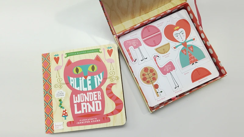 '이상한 나라의 앨리스' 컬러 콘셉트북은 색상에 대한 단어와 그림으로 이루어진 책이에요. blue caterpillar 페이지에는 이상한 나라의 앨리스에 나오는 애벌레 한 마리가 나오는 식이에요. 트럼프 여왕님, 시계 토끼 그림을 보며 색상을 익히는 책입니다.