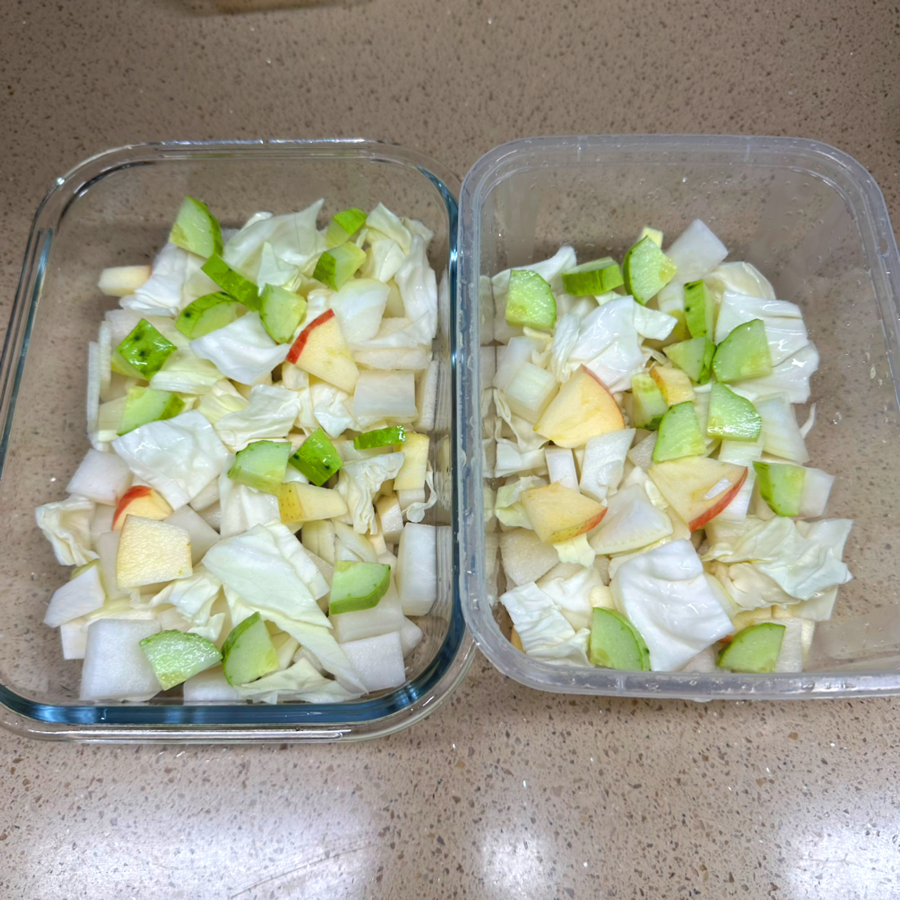 오늘은 사과랑 배를 넣으니 더 맛있을 것 같은 느낌적인 느낌이다.