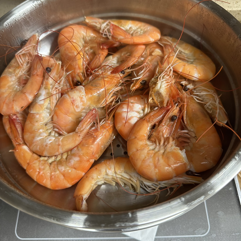 잘 쪄진 새우로 홈파티(?)를 했다^^