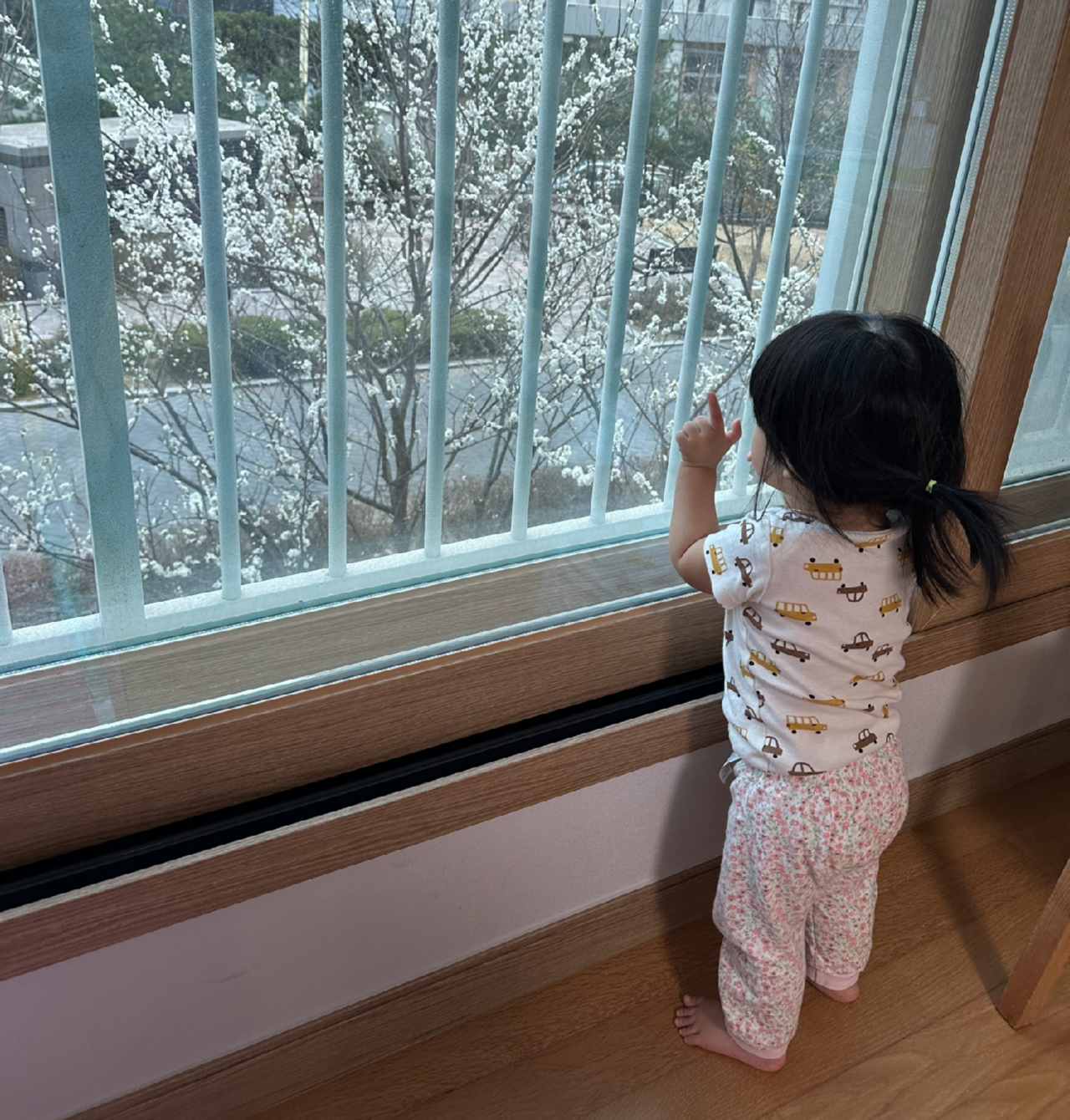 1호가 거실 창가로 달려갔다. 추운 겨울 1월에 이사를 왔으니 이 집에서는 처음 맞는 봄이었다. 거실 창가 밖에 나무에 거짓말처럼 어느새 아주 예쁜 꽃이 가득 피어 있었다.