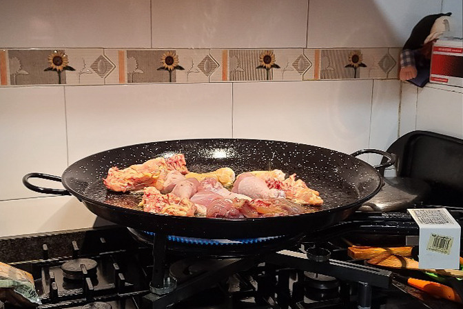 짐을 내려두자마자 나를 곧장 부엌으로 안내했다. 그곳엔 상상 그 이상 크기의 커다란 빠에야 팬이 나를 기다리고 있었다.