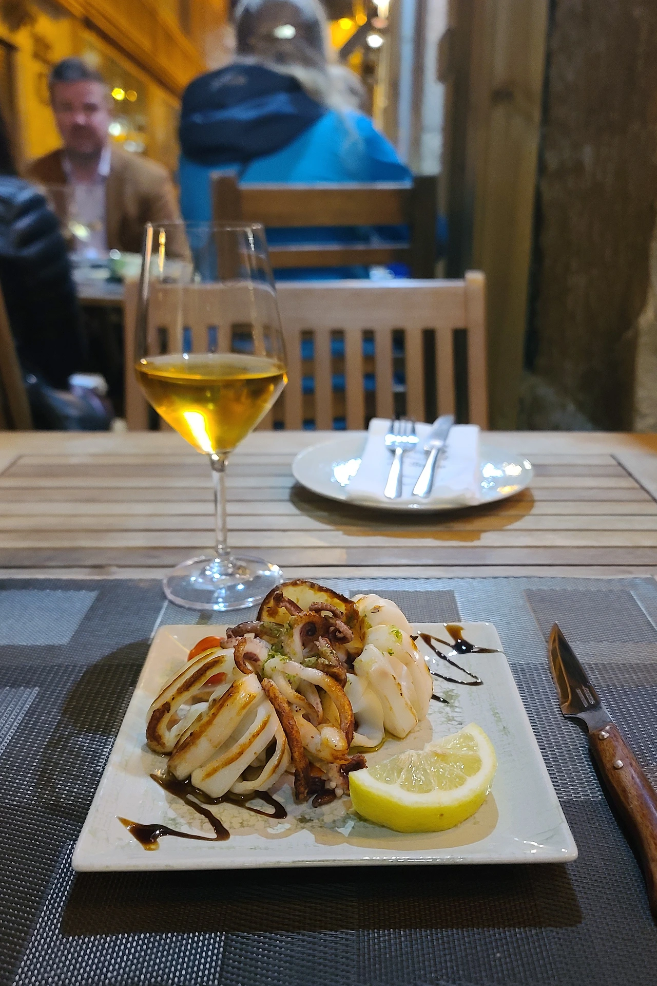 메뉴는 미리 봐두었던 화이트와인과 오징어. 맛도 비주얼도 환상적이었다. 스페인 특유의 부드럽고 통통한 오징어살에 달콤 쌉싸름한 와인까지. 싫어할 수 없는 조합이었다. 양도 딱 적당하고 맛도 좋은데 이걸 왜 엄마랑 스페인 왔을 때는 생각을 못했을까 싶어 후회하며 먹었다. 입 속 가득 채워 넣은 오징어를 씹을 때마다 만족스러웠다. 위기가 찾아올 때까진.
