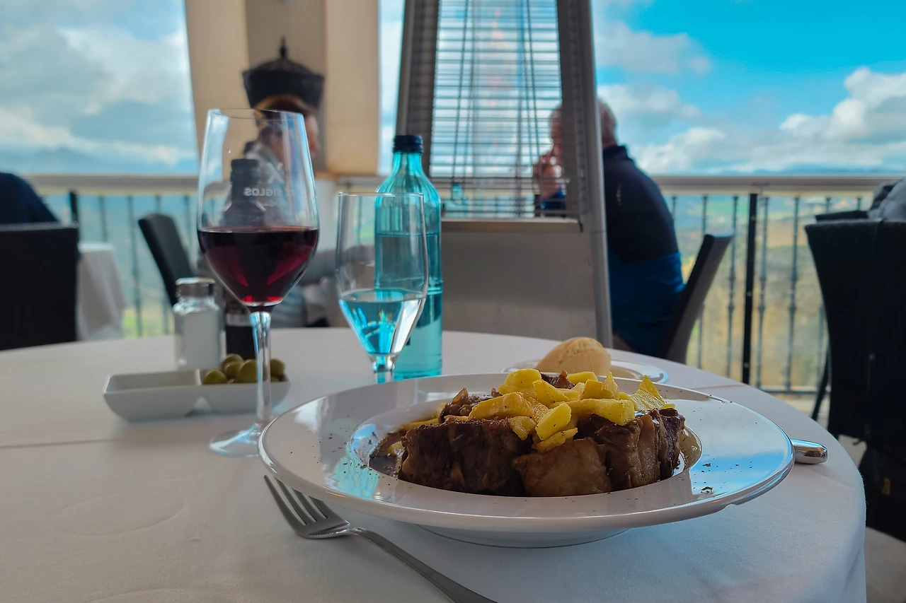 소꼬리찜에 레드와인. 거기에 절벽 뷰까지. 오랜 기다림에 대한 보상이다. 론다에서 유명한 소꼬리찜을 찾다 절벽 아래에서 계속 관찰하고 있던 미슐랭 식당으로 왔다. 명성이 있어서인지 꽤나 만족스러운 식사를 했다. 바깥 하늘이 바뀌는 순간들을 관찰하며. 누에보 다리에 대한 미련이 철철 담긴 식사 한 끼였다고도 할 수 있겠다.
