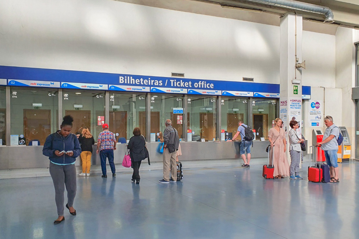 Lisboa sete rios역 근처에 있는 rede expressos 티켓 창구에서 버스표를 구매할 수 있다. (rede expressos 티켓 창구까지 가는 길은 sete rios역에서부터 화살표로 안내가 되어 있지만, 조금 헤맬 수도 있다. 헷갈릴 때는 구글 맵에 'lisboa rede expressos'를 검색하면 정확한 위치가 나오니 참고.) 금액은 왕복 성인 기준 11.30유로. 학생 할인이 있어 학생은 9.40유로에 구매할 수 있다 (2019년 기준). 티켓에 적힌 중간쯤에 viatura와 lugar 번호가 적혀있는데, viatura는 버스 번호, lugar는 좌석 번호이다. 탑승하는 곳 표시되는 전광판에서 버스 번호만 보고 쉽게 파악할 수 있으며, 좌석 번호에 따라 버스 내 좌석에 앉으면 된다.