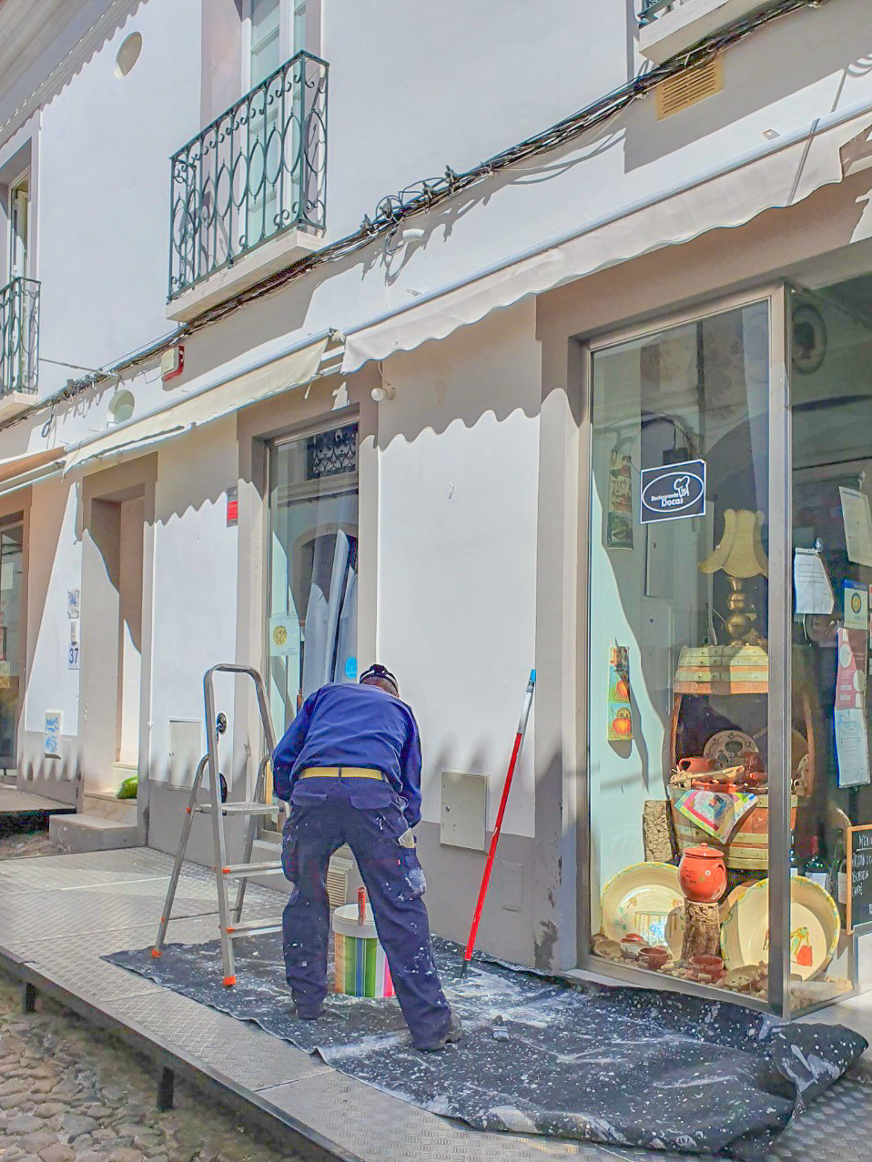 기본적으로 하얀 벽에 알록달록한 개성 있는 문들이 지금까지 봐온 포르투갈의 느낌과는 많이 달랐다. 마음에 드는 문을 찍으며 걷던 와중에, 외벽을 칠하고 있는 현지인들을 봤다. 흰색은 때가 쉽게 타서 밖에 드러나 있으면 금방 더러워지기 십상인데 어찌 이리 관리가 잘 되어있을까 궁금했는데, 이유를 알게 되었다. 휴일도 아닌 날에 곳곳에서 페인트 칠을 하고 있는 현지인들을 보니 그들의 삶이 달리 보였다. 조상들이 남긴 잘 보존된 유산들만 좇던 여행에서 벗어나 그들의 삶을 직접 본 거 같아 좋았다.