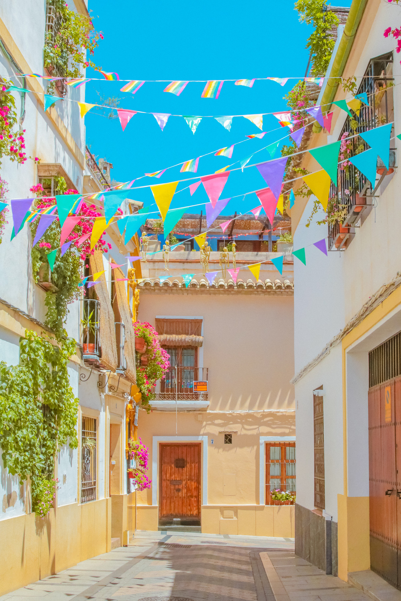 분명 유대인 지구가 예쁘다고 했는데, 어딘가 모르게 휑한 느낌이었다. 특정 구역만 유대인 지구인가 싶어 혹시나 하는 마음에 무작정 골목을 돌고 돌았다. 언젠가는 글로만 보던 곳을 마주하지 않을까 싶어서. 그러다 너무 마음에 드는 한 골목을 만났다. 분홍색 꽃이 가득 펴 있고 마치 축제를 하는 듯 가랜드를 잔뜩 걸어놓은 골목. 강하게 들어오는 햇빛 때문에 모든 것이 배로 화사해 보이는 효과까지 더해지니 너무 예뻤다.