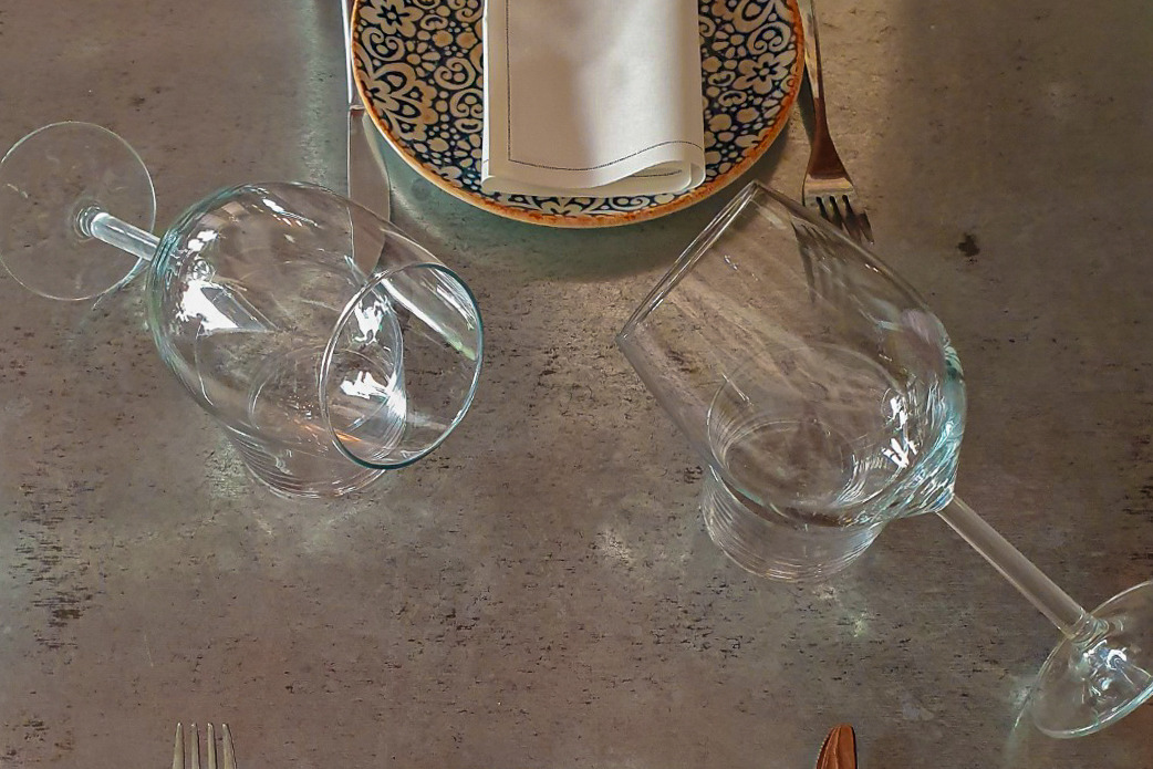 세워져 있는 와인잔만 봤는데, 기울어져 놓여있는 와인잔 세팅부터 신기했다. 유럽의 대부분의 식당들은 미리 세팅이 되어있는데, 그래서 자리에 앉을 때마다 고급 레스토랑에 온 기분이다. 가격도 늘 그만큼 어느 정도 있다는 게 아쉬운 문제지만.
