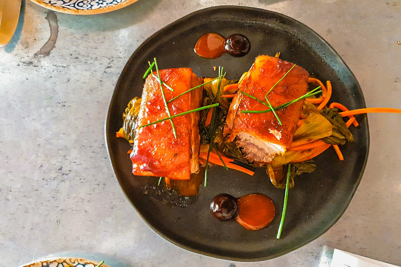 봐도 뭔지 모를 메뉴다. 그냥 예쁘게 플레이팅 된 요리. 메뉴 설명을 보지 않았으면 김치 소스 인지도 모를 요리. 보쌈 같으면서도 퍽퍽하지 않고 야들야들한 고기에 채소들과 함께 먹으니 질리지 않았다. 그동안 주문했던 고기들은 채소도 소스도 없이 소금간만 된 게 많아서 먹다가 질릴 때도 있었는데, 소스도 있어서 먹다가 질리지 않았다.