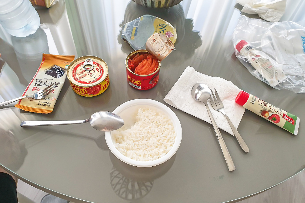 한국인이라면 여행 갈 때 꼭 챙긴다는 것들을 우리 역시도 챙겼다. 햇반, 볶음김치, 김, 참치, 고추장 등등 다양하게. 우리만의 개별적인 식사 공간도 있으니 오랜만에 한식을 먹기로 했다. 49일 중 이게 유일한 한식 식사였던 만큼 이것 나름대로 의미가 있었다.