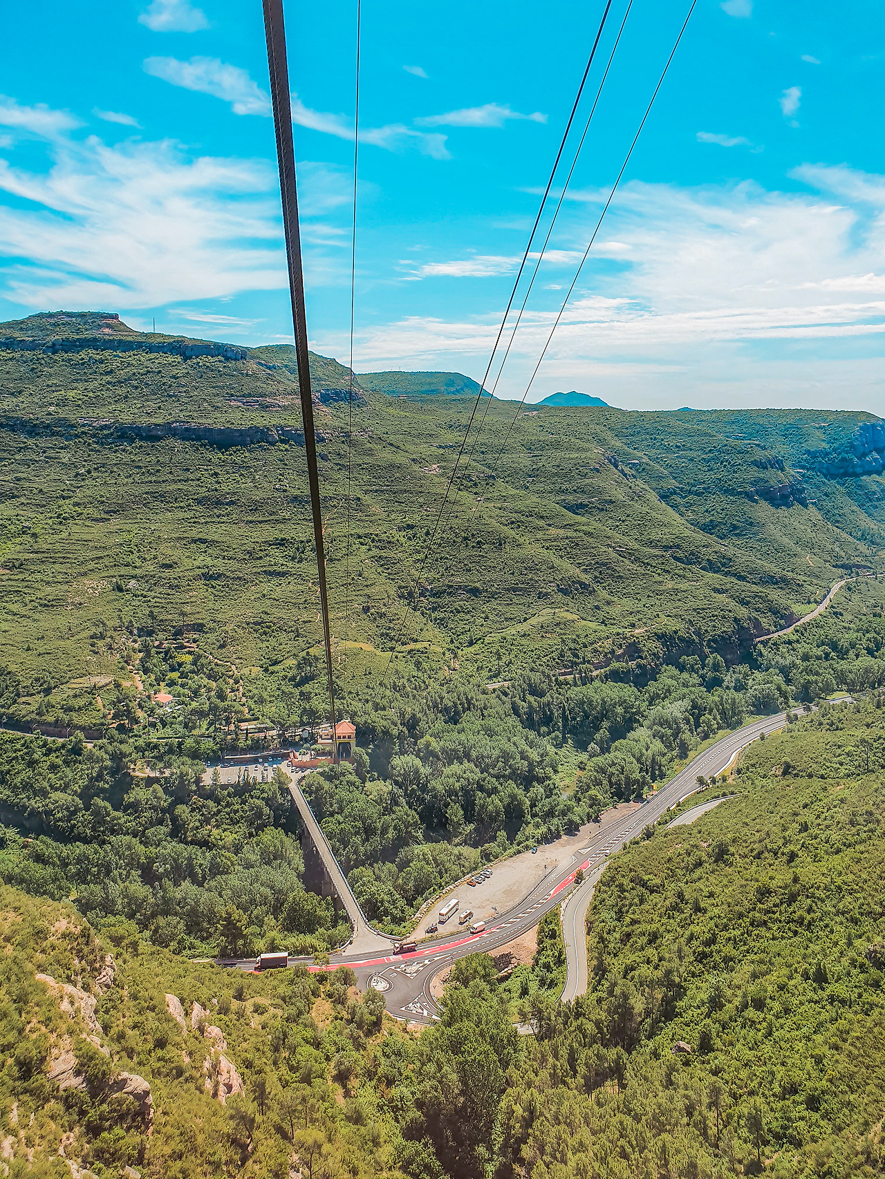 바깥을 보기 위해 한쪽 창문에 찰싹 붙은 채로 올라갔다. 창 너머로 보이는 몬세라트의 풍경은 정말 독특했다. 동시에 특징이 너무 강하게 드러나 가우디가 어떻게 이 산에서 영감을 받았는지 단번에 이해가 됐다. 이 각도는 케이블카를 탄 순간에만 볼 수 있으니 어떻게서든 담아야 했다. 한 손에는 DSLR, 한 손에는 휴대폰을 들고 카메라 렌즈를 창에 찰싹 붙여 다각도로 찍었다.