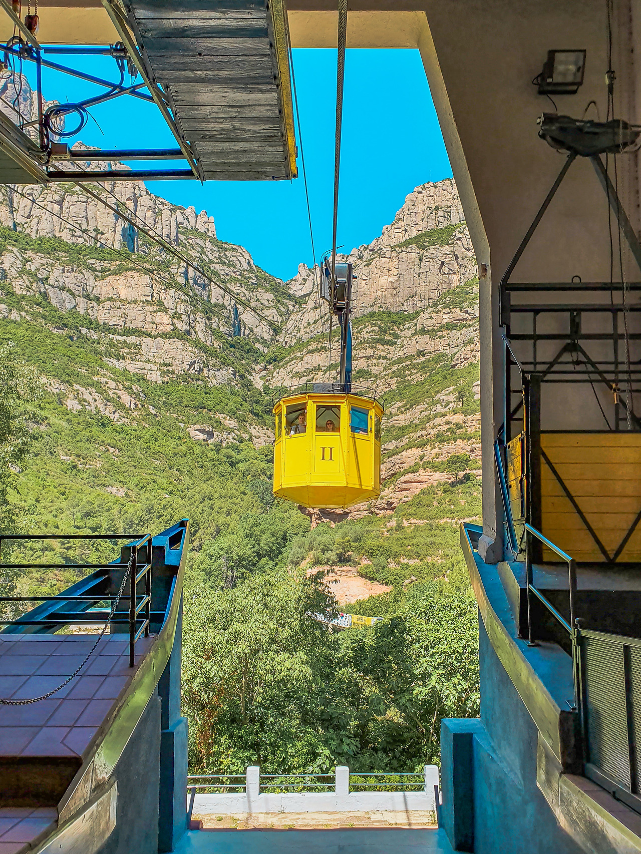 샛노란 케이블카가 사람을 나르는 몬세라트. 케이블카는 생각보다 많은 사람을 한 번에 태웠고, 덕분에 예상보다 일찍 탔다.