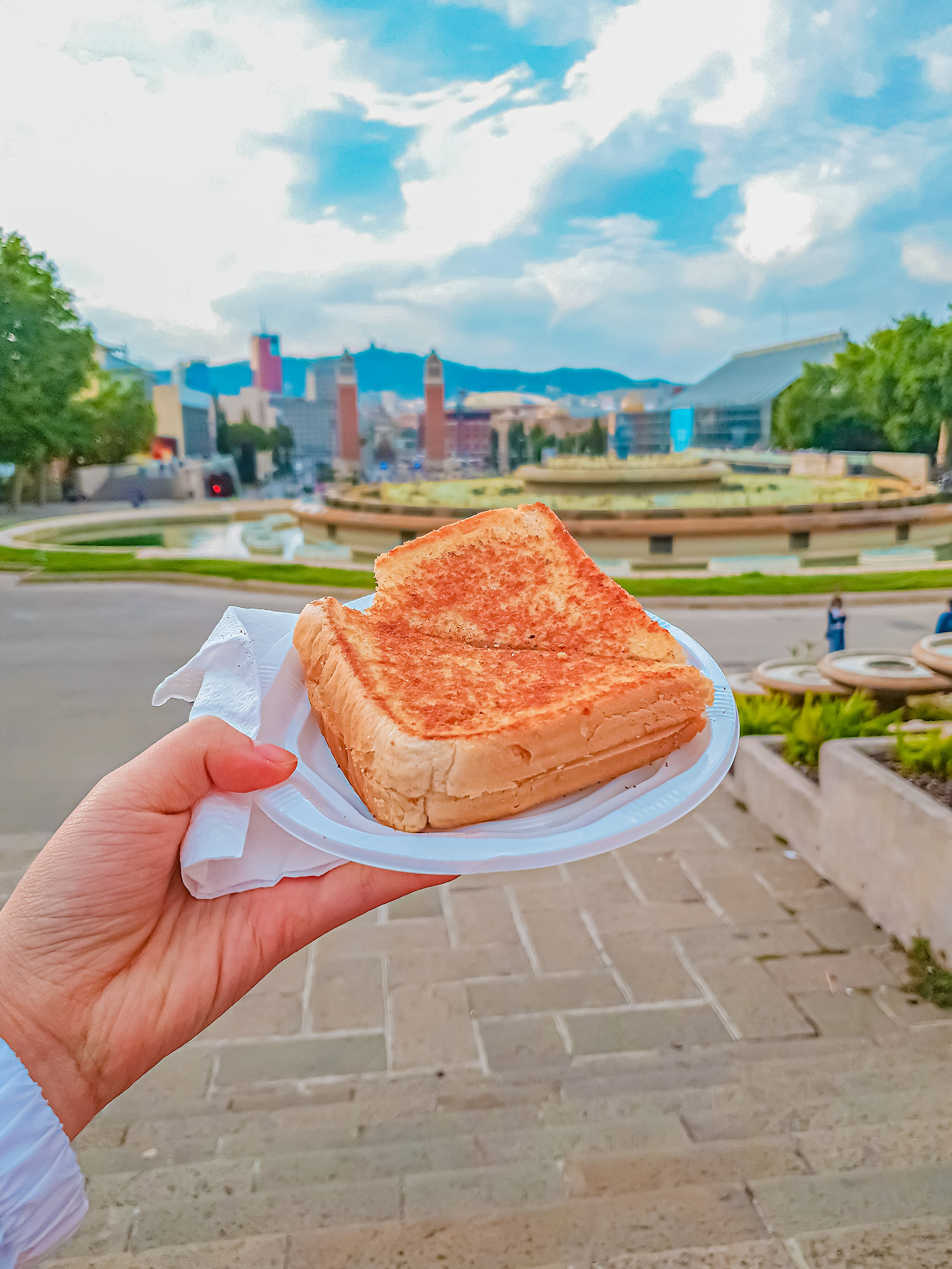 역시 사람들이 주기적으로 많이 찾아와 오래 머무는 곳이라 그런지 매점은 규모는 작지만, 파는 건 다양했다. 토스트, 보까디요, 각종 캔디, 초콜릿, 과자 등등. 우리는 그중에서 배를 채워줄 토스트와 긴 시간 분수쇼를 보면서 먹을 간식을 하나 골랐다.