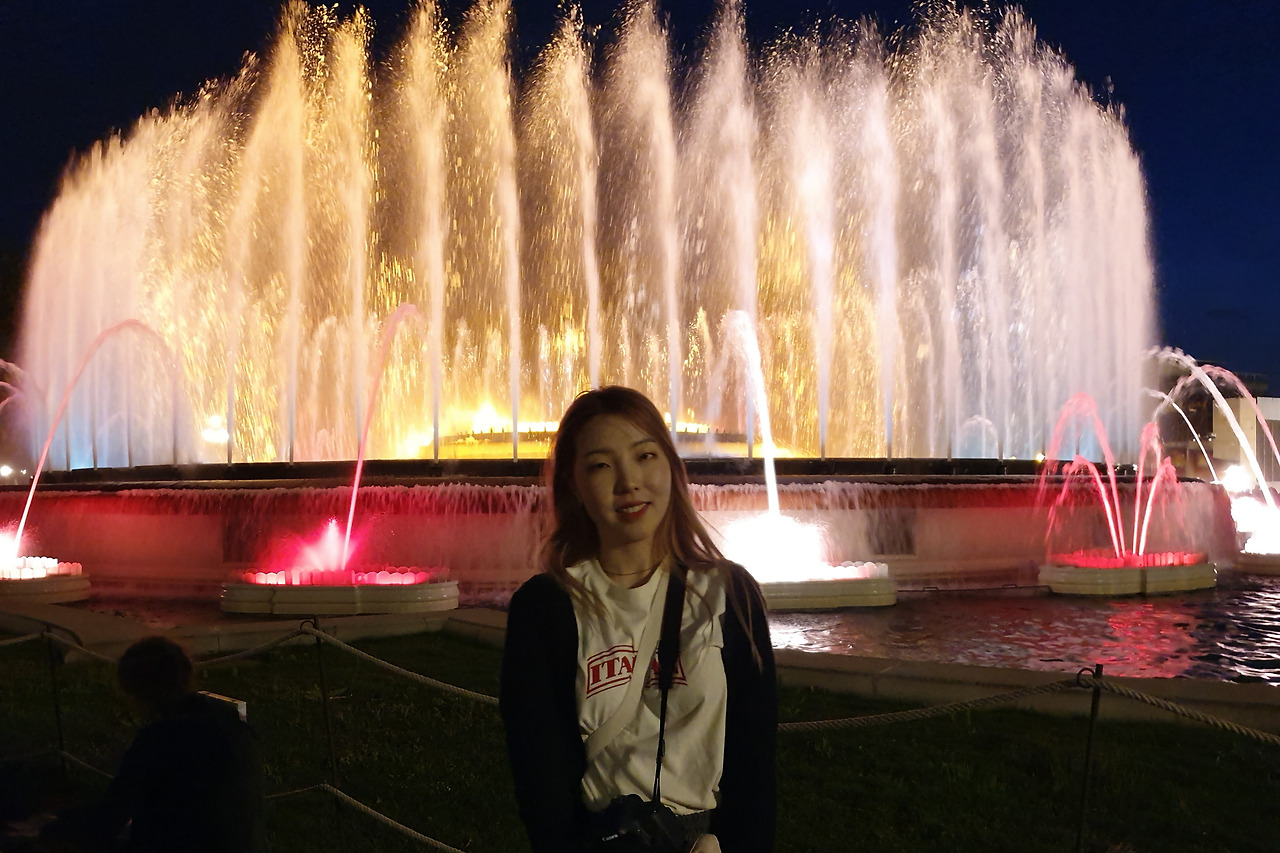 지하철로 가는 길에 보다 더 자세한 기념을 위해 정신없는 틈을 비집고 분수대 가까이 갔다. 멀리서 보던 감동은 없었지만, 미스트 뿌리듯 계속 흩날리는 물 때문에 분수쇼를 더 생생하게 느낄 수 있었다. 주변 분위기도 더 파티 같이 역동적이고.