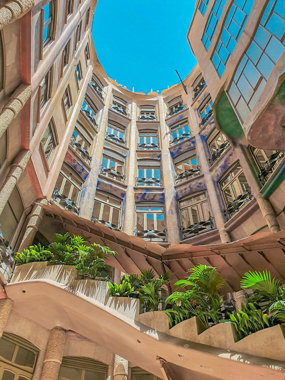 카사 밀라 입구를 지나 마당 쪽으로 들어오자마자 안에서 바라본 건물의 모습에 놀랐다. 절대 사거리 건너편에서 보면서 상상하지 못한 모습이었기 때문에. 마당에서 본 느낌은 처음 외관을 보며 생각했던 것과 단 1%도 맞지 않았다.
