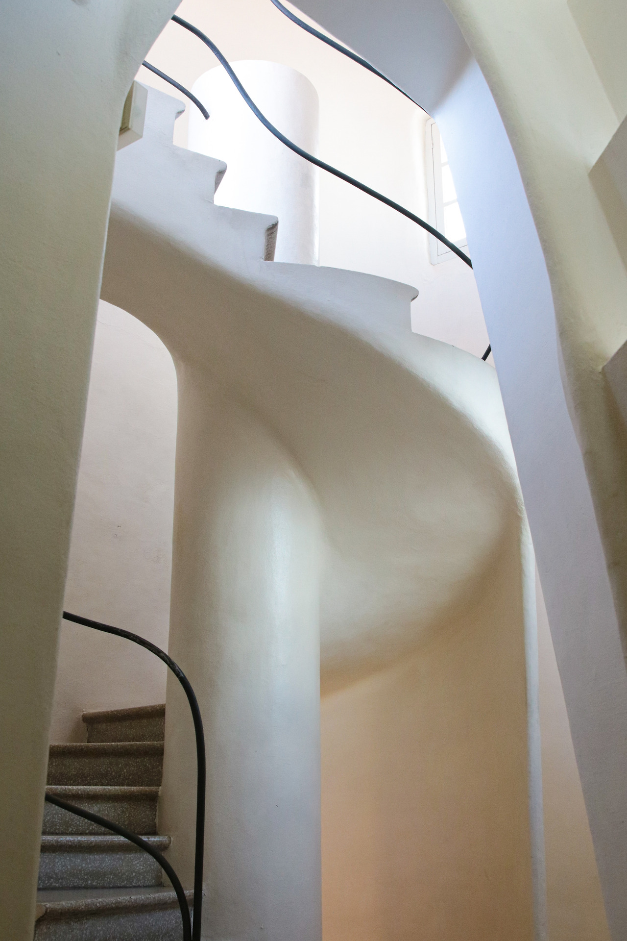 아무것도 없어 보이는 복도와 계단마저 곡선 투성이인 실내. 조명이 당연히 있어야 할 이곳조차도 조명이 없었다. 오로지 자연광에 의존하게 되어 있는 구조. 그런데 조명이 있는 듯 환한 게 밤이 되지 않으면 절대 몰랐을 거다. 자연을 얼마나 연구를 했을지 이제는 감탄만 나온다.