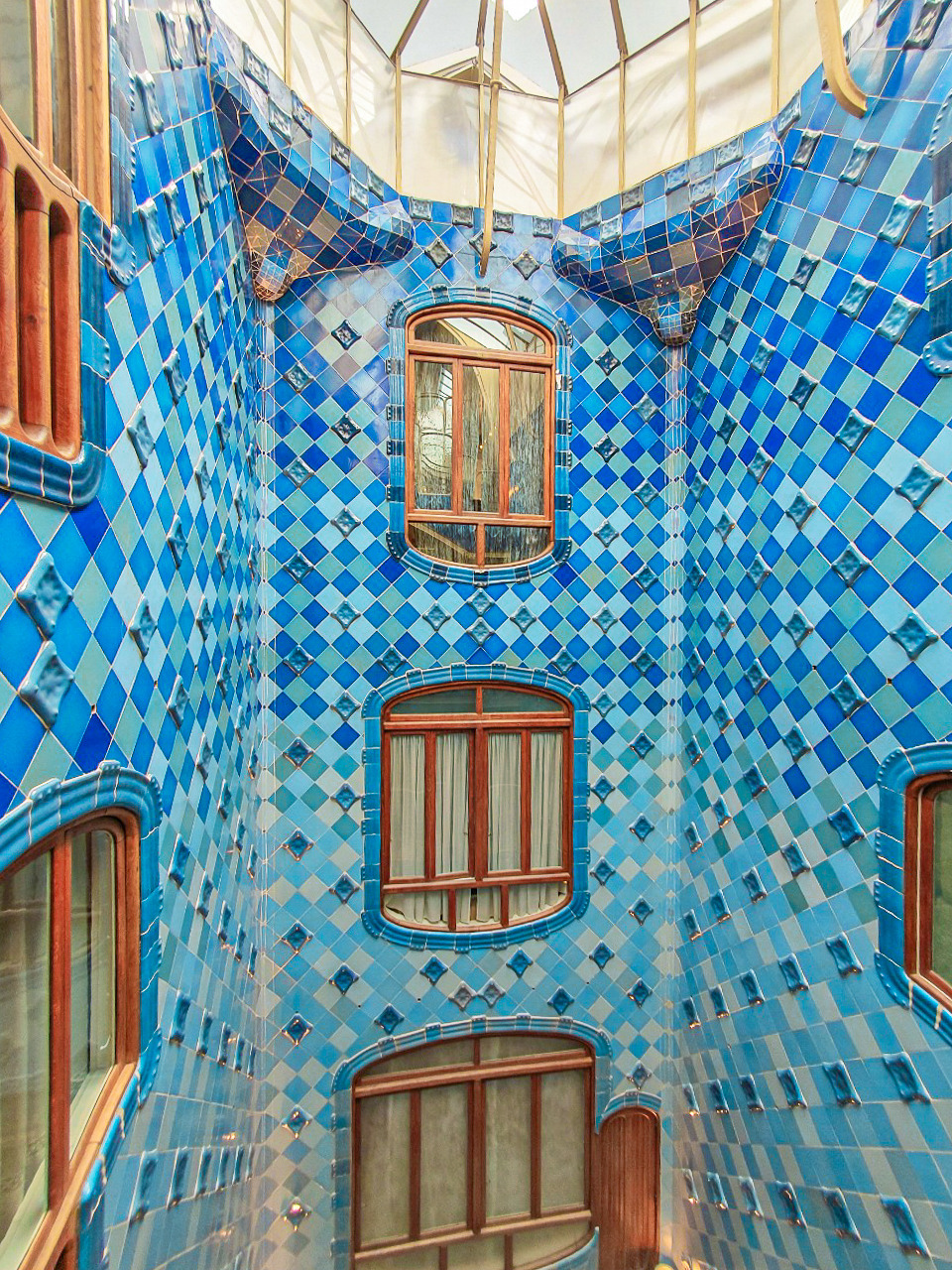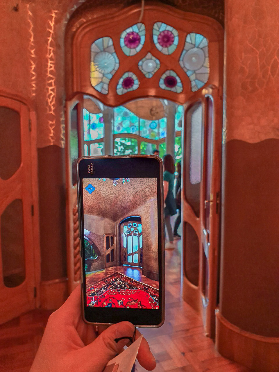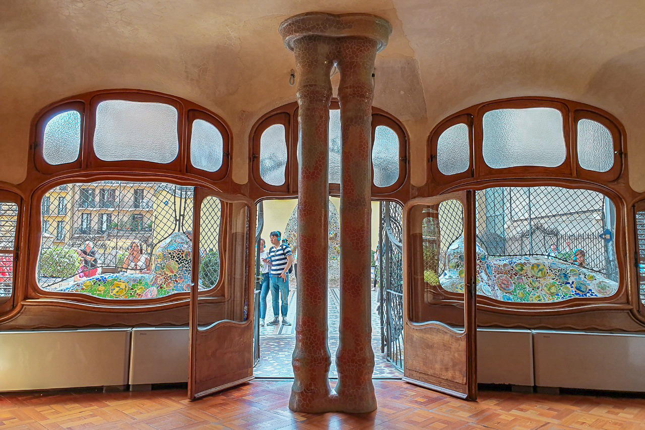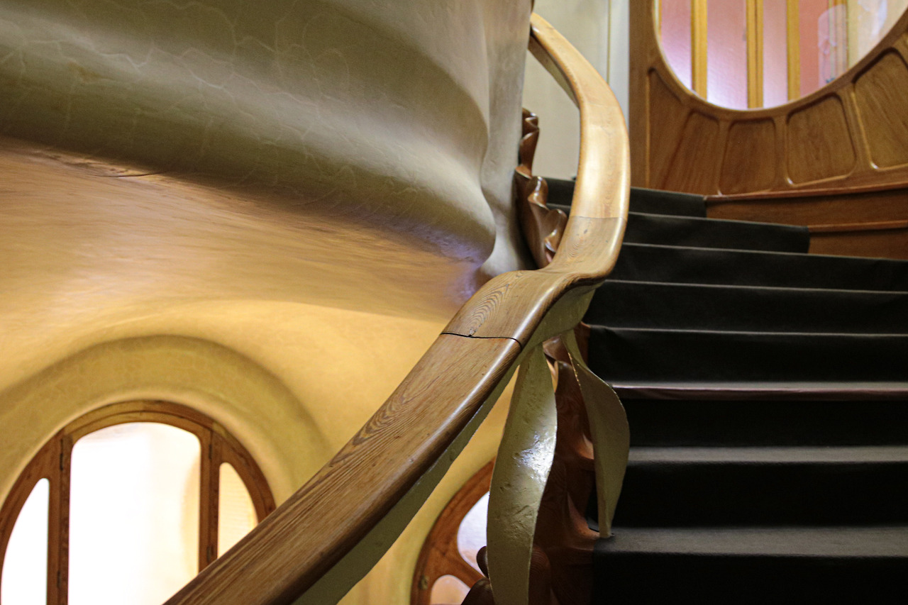모든 가우디의 건축물이 그랬지만, 한국어 오디오 가이드를 세세하게 들어서였는지 카사 바뜨요에선 유기적인 형태가 담긴 요소들이 유독 더 눈에 띄었다. 계단 손잡이도, 복도에 있는 폭이 좁고 기다란 창문도 창문 손잡이도, 그 어디에도 직선이라고는 찾아볼 수 없었다.