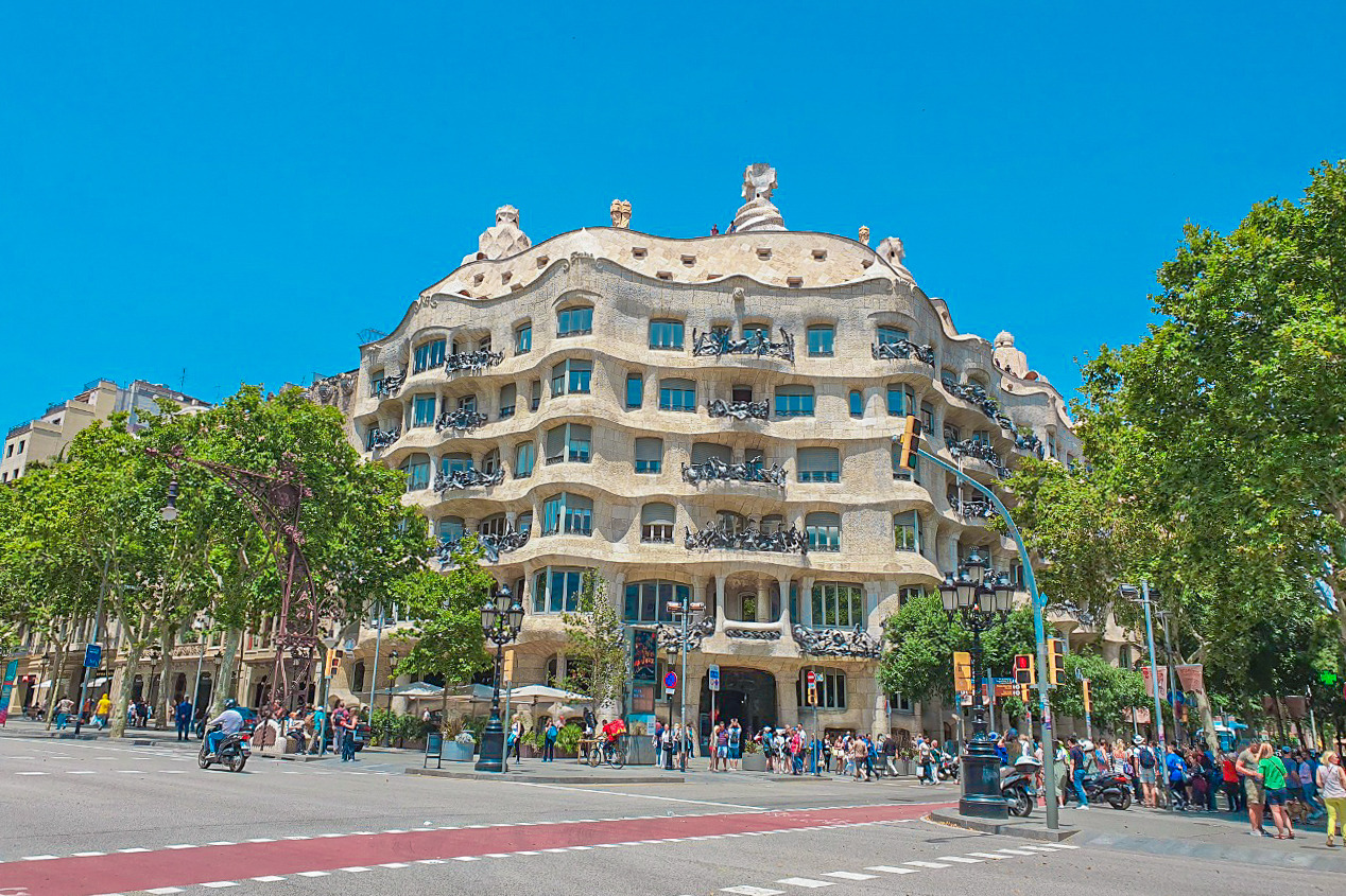 멀리서도 한눈에 알아볼 수 있는 큰 사거리 코너에 위치한 카사 밀라. 이 독특한 건물은 현재도 누군가가 살고 있는 Casa(집)다.