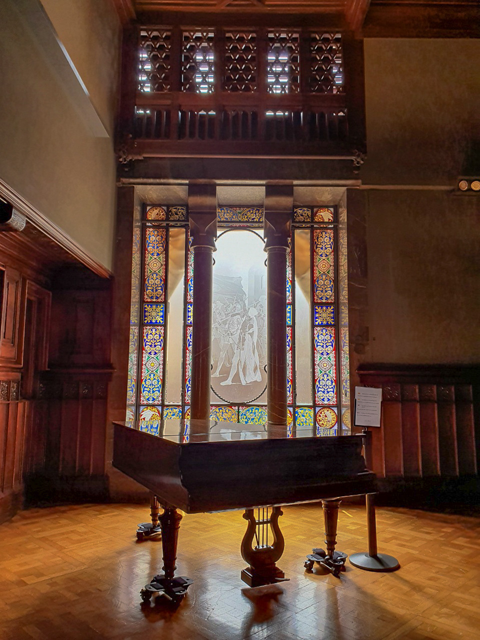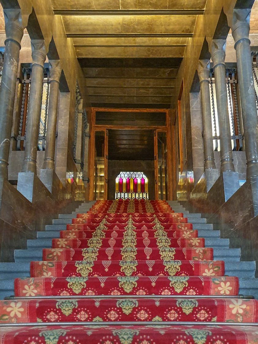 입구에서 위로 올라가는 길. 사람도 없고 오로지 우리 둘만 있으니, 이 계단이 마치 우리를 위한 레드카펫 같았다. 연회장도 그랜드 피아노도 모두 구엘의 대단한 지위를 보여주었다. 가우디를 한평생 후원을 해왔으니 보통 사람이 아니라는 건 알고 있었지만, 그의 집이라곤 믿을 수 없었다.