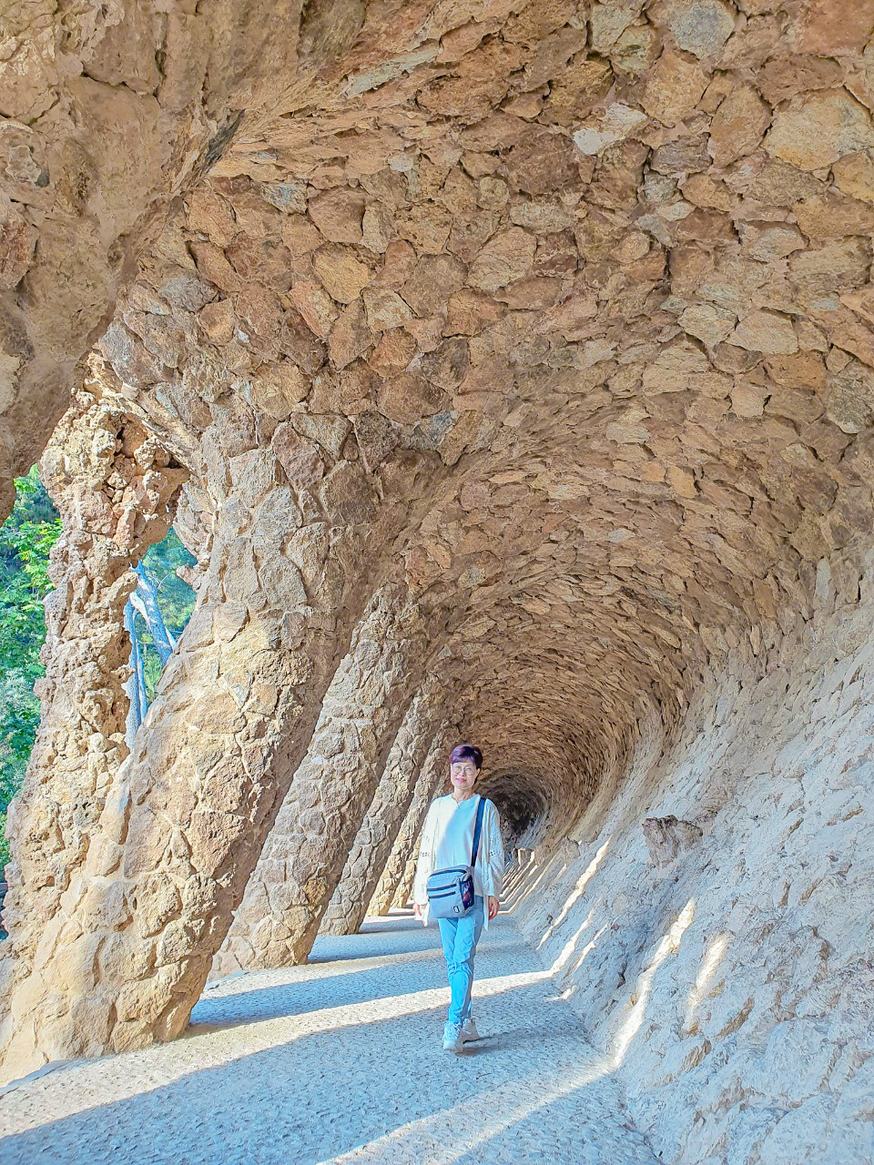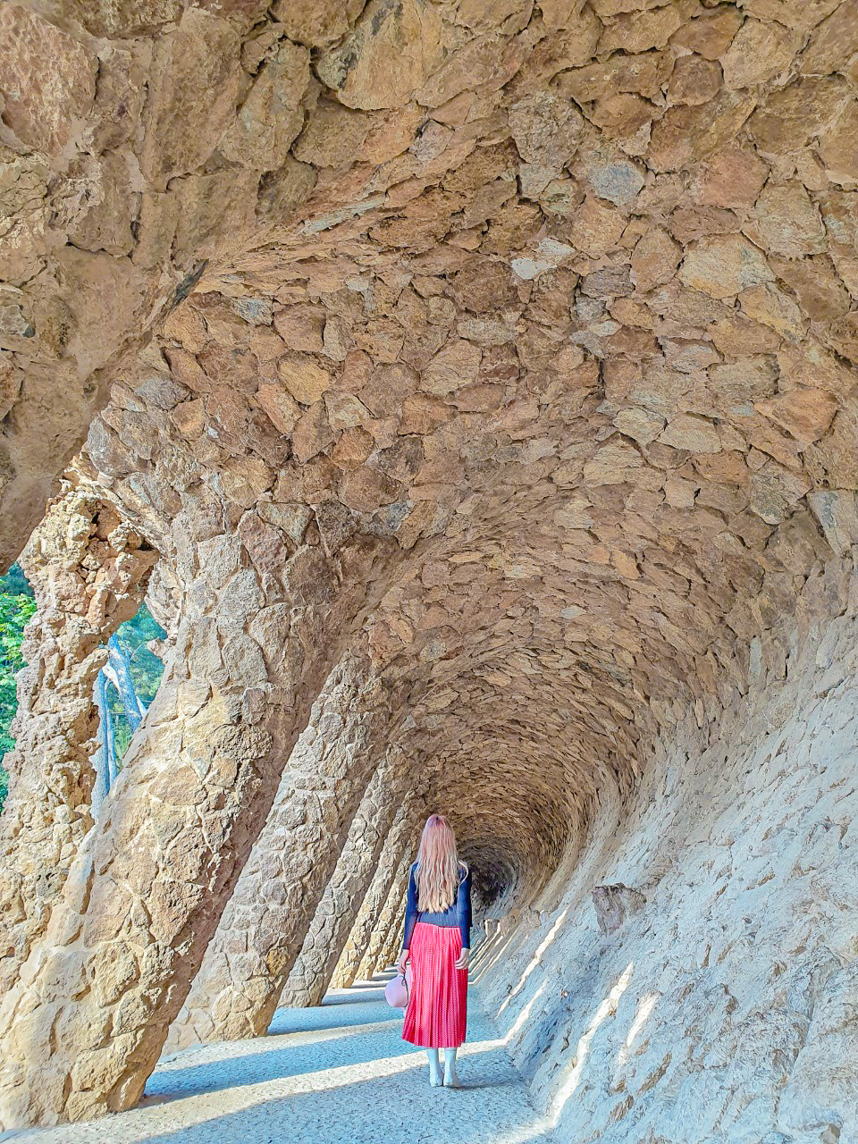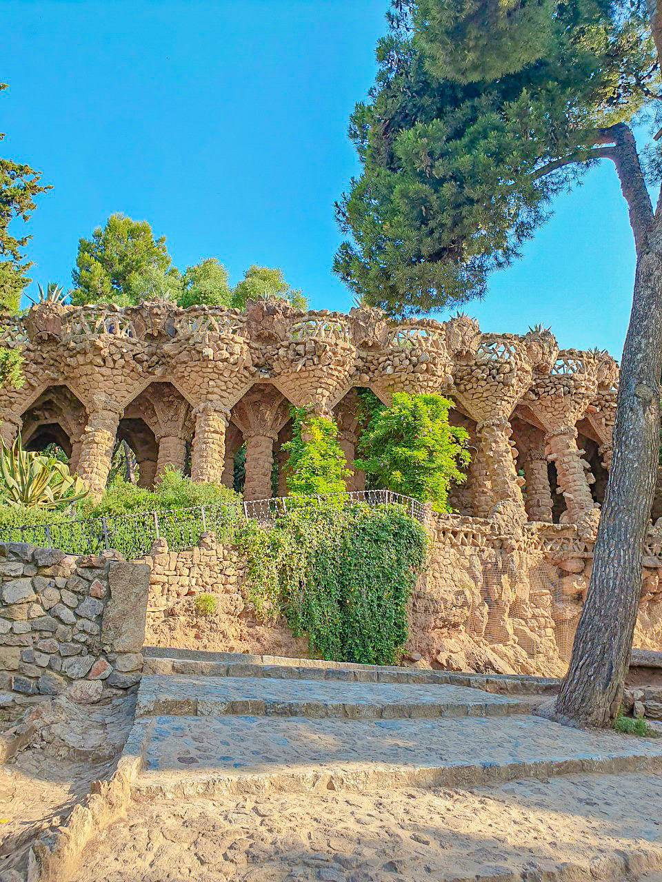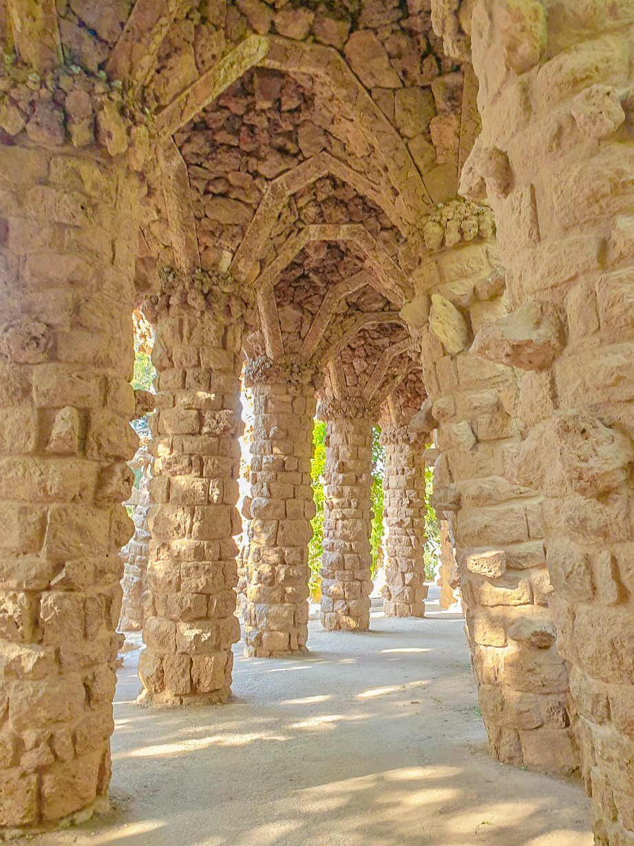 공원은 생각보다도 더 넓었다. 뻥 뚫린 느낌이 아니라서 걷는 내내 새롭게 등장하는 공원의 모습 때문에 양파 같았다. 정체를 알 수 없는 독특한 구조물의 뚫린 터널이 또 등장했고, 여기서는 돌로 만든 의자도 있었다. 그늘 아래 걷고 쉬고 친자연적인 환경의 구엘 공원. 여유만 있다면 시원하게 산책하기는 좋은 환경이다.