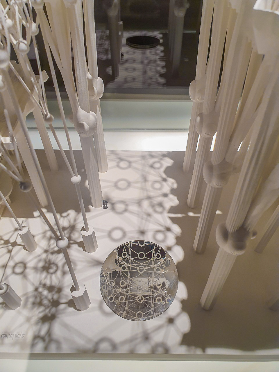 가운데 뻥 뚫린 공간에 빼곡히 붙어있는 파란색 타일들. 그 앞의 난간으로 언뜻 보이는 모습이 무언가 일렁이는 듯했다. 앞에 카메라를 들이밀고 움직여보니 정말 물이 움직이는 것 같았다. 난간에서 추락 방지를 위해 설치해 놓은 유리마저 평범하지 않은 그의 건축. 신기해서 한참을 바라봤다.