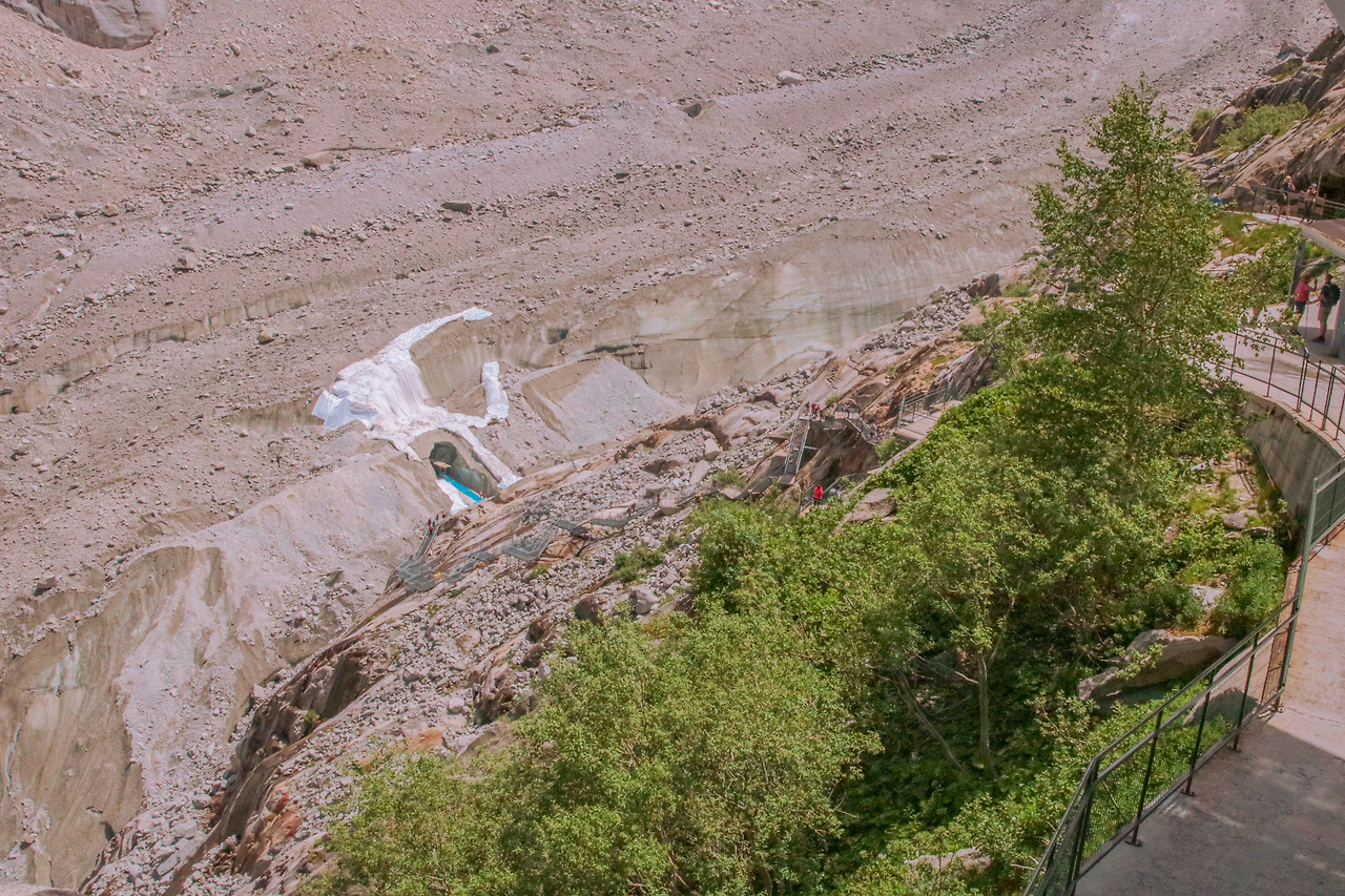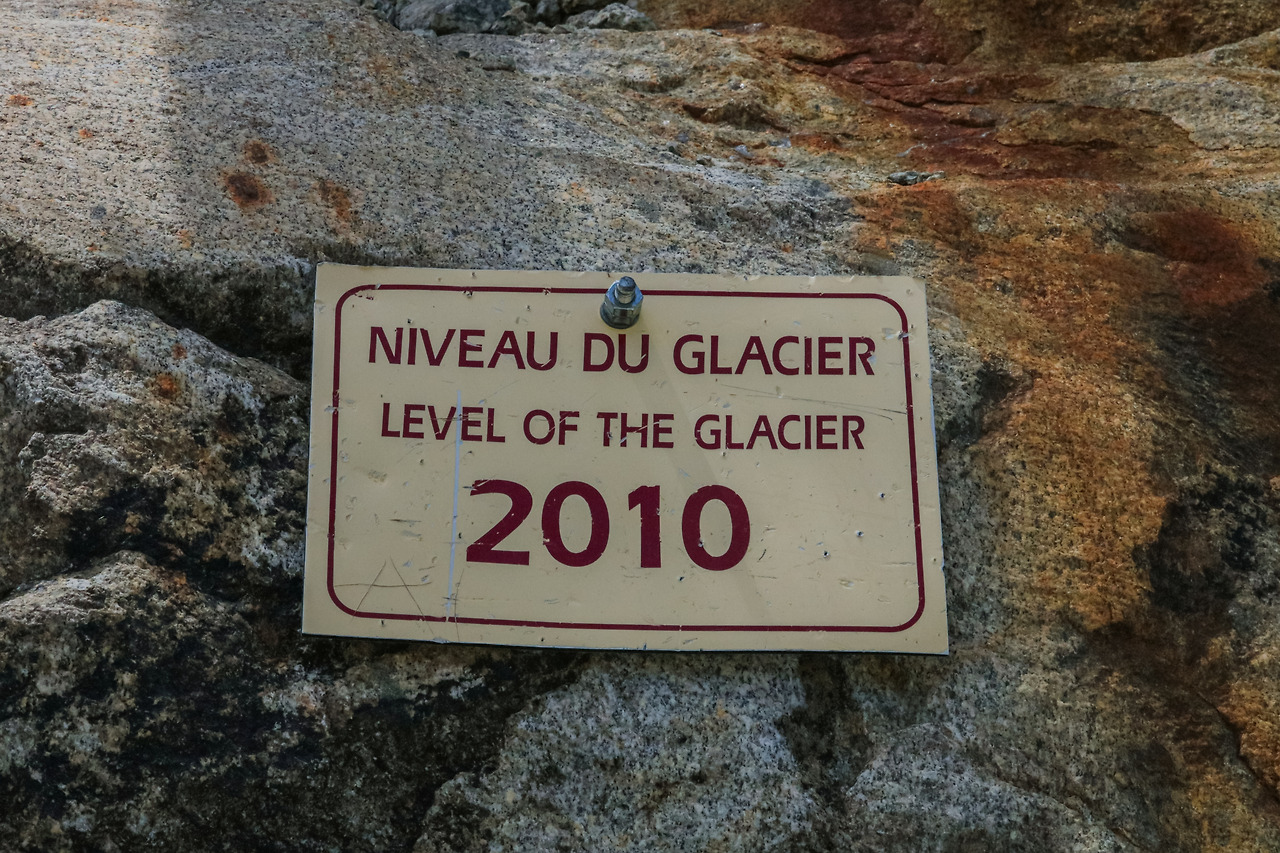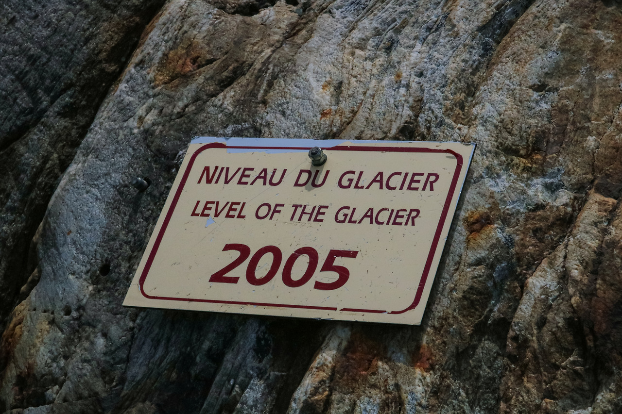 다시 열차 타러 계단을 올라가는 길. 동굴만 바라보며 내려올 때와 다르게 하늘을 쳐다보며 가니 벽에 붙어있는 안내판이 눈에 띄었다. 바로, 빙하 레벨 표시선. 이를 통해 지구온난화가 얼마나 급속도로 진행되는지 한눈에 확인할 수 있었다. 20년 전과 10년 전의 감소세에는 굉장한 차이가 있었기 때문에. 앞으로 이 빙하가 모두 녹아내리면 지구는 어떻게 될지. 환경문제를 깊게 생각하게 되는 표지판이었다.