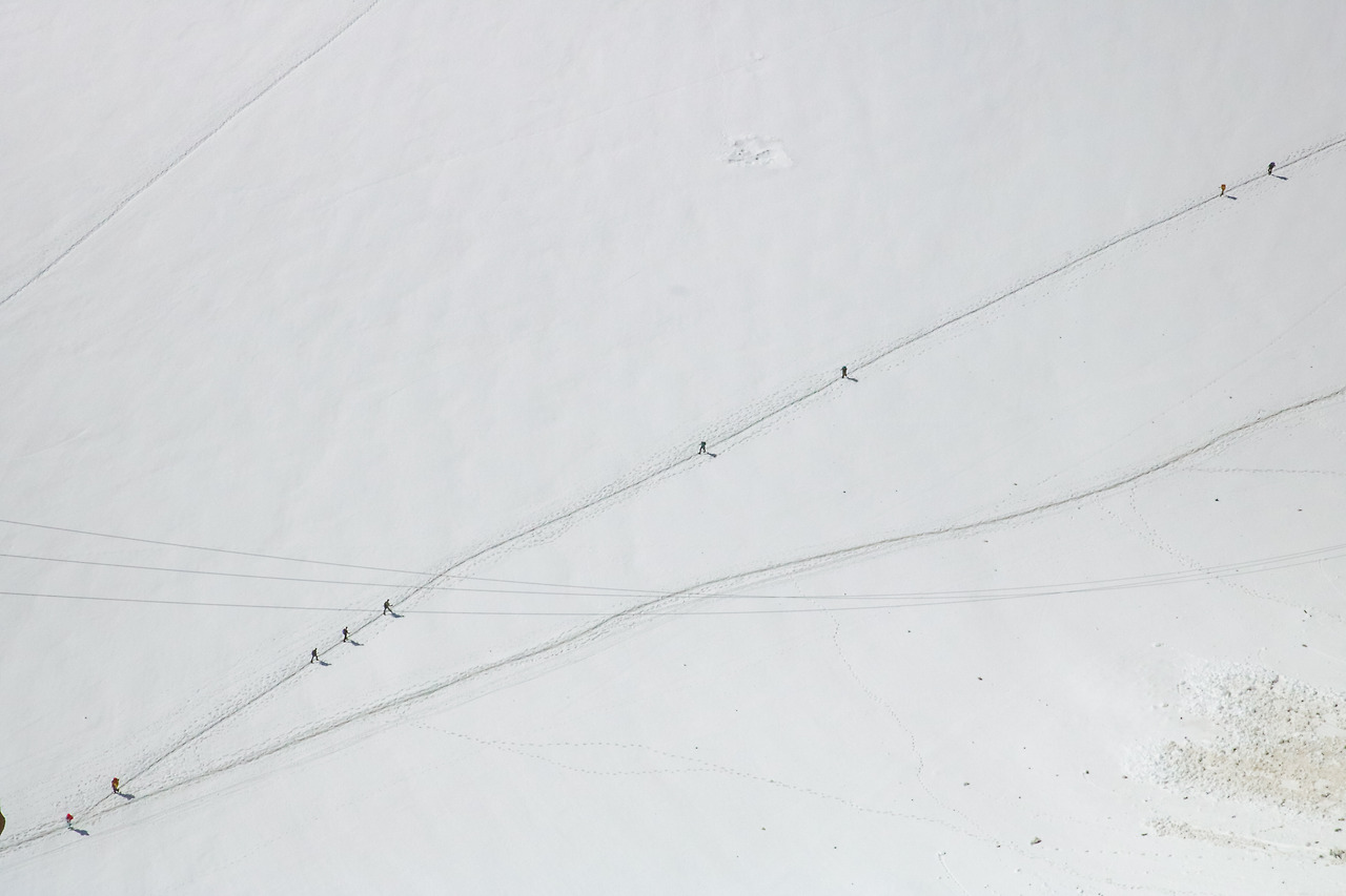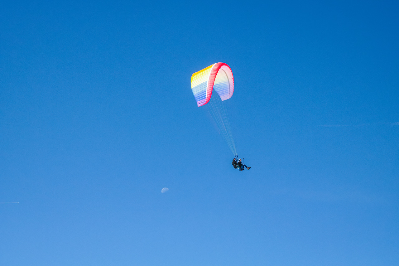 산 위에서는 패러글라이딩을 하는 사람들, 설산을 등반하는 사람들 등 액티비티를 즐기는 사람들을 볼 수 있었다. 패러글라이딩은 혼자서 뛰는 숙련된 사람들이 꽤나 있었다. 파란 하늘을 자유로이 누비는 이들의 모습이 부러웠다. 한걸음 한걸음 열심히 올라오는 등산객들의 체력마저도. 파랗고 하얀 도화지 위에 점 같은 존재로 자연과 어울리고 있는 이들의 모습을 보고 있는 것만으로 눈이 즐거웠다.