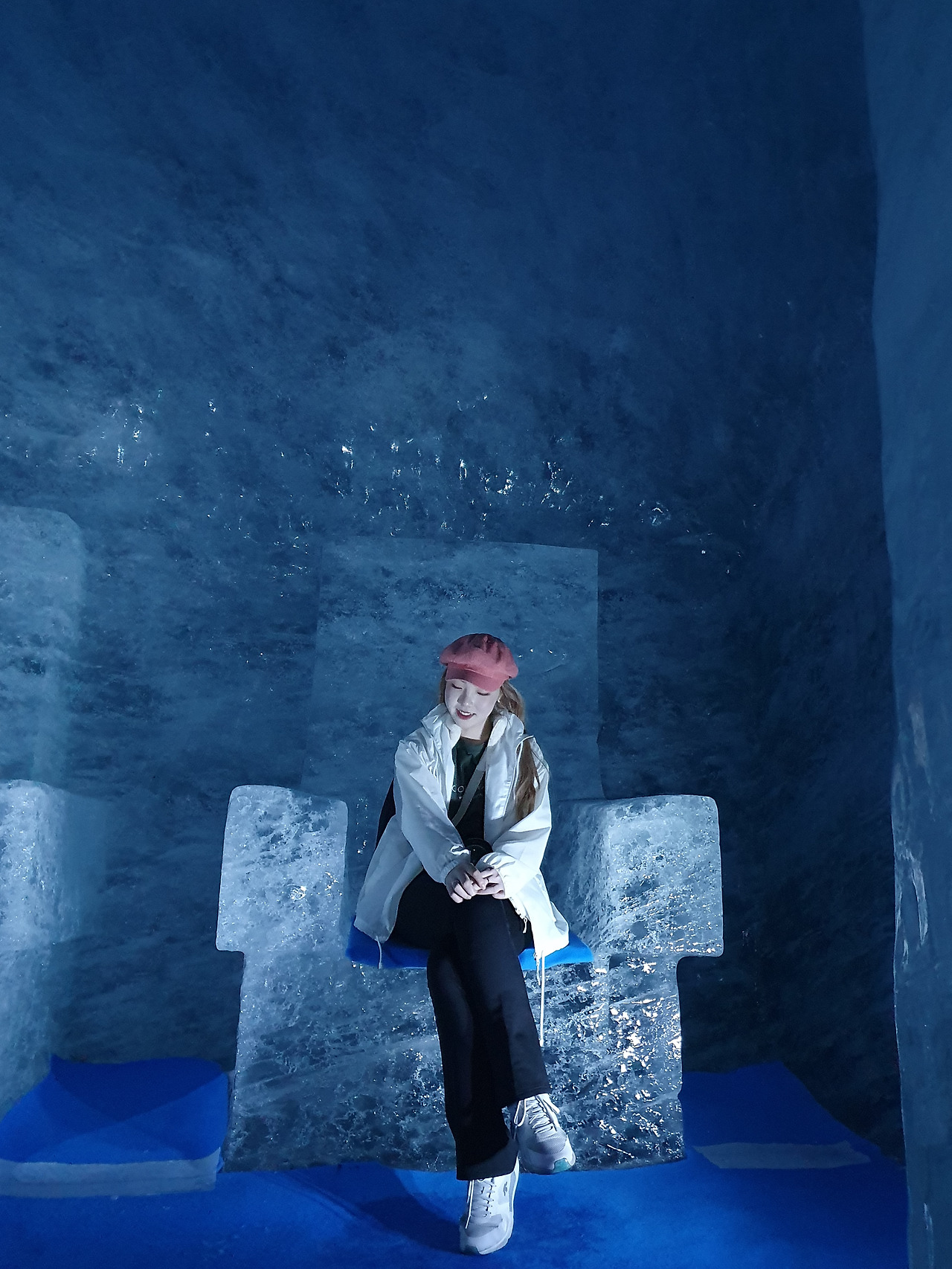 동굴 내부엔 얼음조각들이 곳곳에 있었다. 누가 여기까지 와서 조각을 놓고 간 것일까? 실제로 보면 별 볼 일 없지만, 존재만으로 물음표가 가득 생겼다. 단순히 보고 즐기는 입장에서는 반가운 모습이지만, 한쪽 구석에서 빙하가 녹으면서 쏟아져내리고 있는 물을 보아하니, 한편으로는 자연파괴가 걱정되었다.