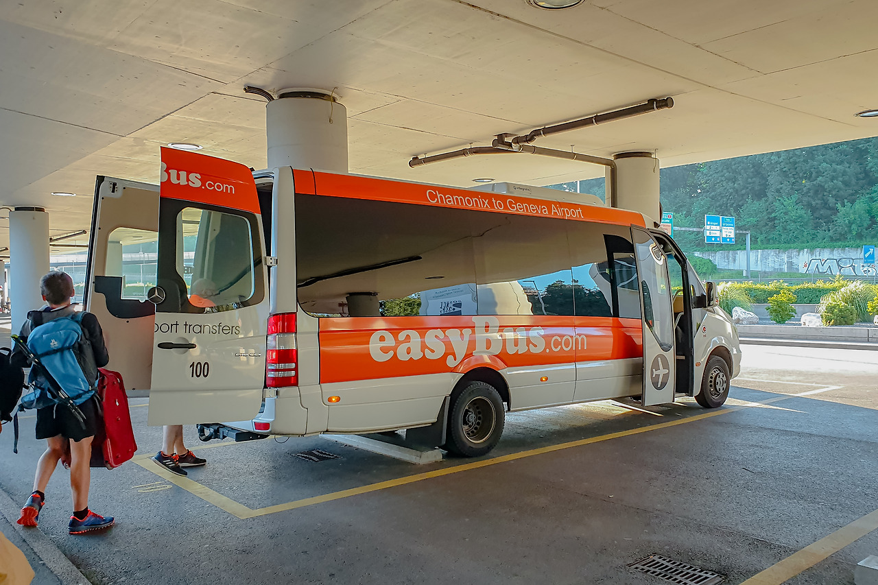 제네바에서 샤모니까지 가는 방법은 기차, 버스 두 가지가 있다. 기차가 버스보다 2배 이상 걸리고, 직행도 없기 때문에 버스를 추천한다. 당시(2019년)에는 easy Bus만 제네바 공항에서부터 운행되었으나, 현재는 SwissTours, BlaBlaCar가 운행 중이다. 공항뿐만 아니라 시내에서도 갈 수 있으며, 시간대마다 적합한 버스가 다르니, 검색 후 미리 예매하고 가기를 바란다. 출발지에 따라 차이는 있지만, 약 1시간 정도 걸린다.