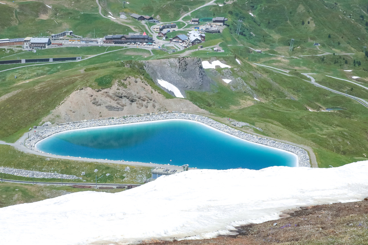 이것의 정체는 플보덴 호수. 인공 호수다. 주변이 워낙 자연으로 가득해서인지, 인간의 손으로 만든 것은 바로 눈에 띄었다. 빙하가 녹은 물이 고여있는 것이었는지, 어떠한 자연에서도 볼 수 없었던 아름다운 빛깔의 옥색과 푸른색 그 사이 어딘가의 색이 인상 깊었다. 이곳에 있던 사람은 단 두 명, 엄마와 나. 사람도 없는 곳에 이렇게 인공적으로 해놓은 이유를 찾을 수는 없었으나, 여정의 막바지에 잠시나마 오아시스 같은 느낌을 받았다.